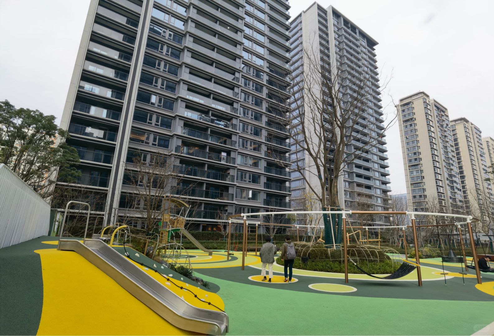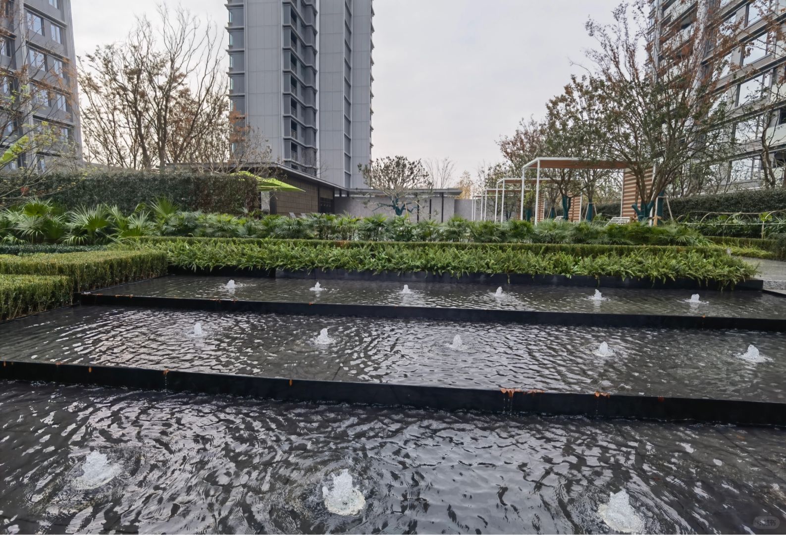 配套比较丰富,有水榭、童玩区、跑道、森林迷宫、大草坪等等,老实说这个分数稍微低了点,但它和古翠隐秀同款的中央水景,实在是有点一言难尽……