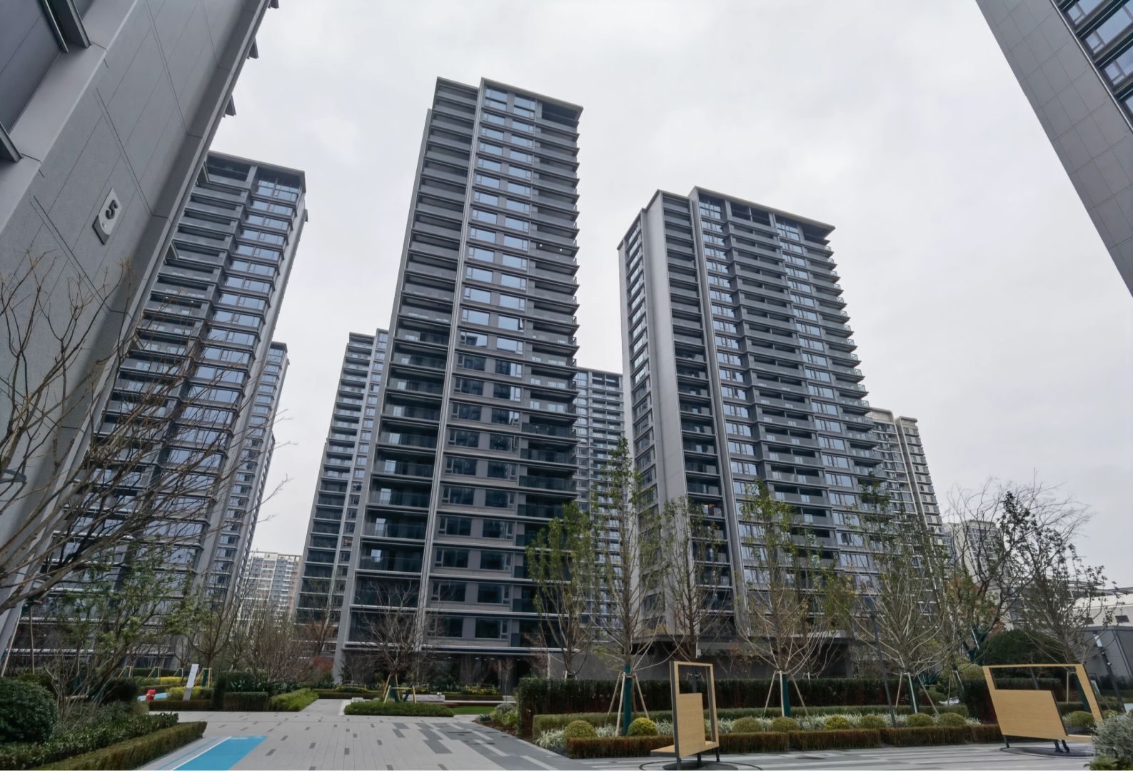 就万科的审美来说,也就一般,立面是涂料+玻璃+部分铝板,非对称的造型还算亮眼