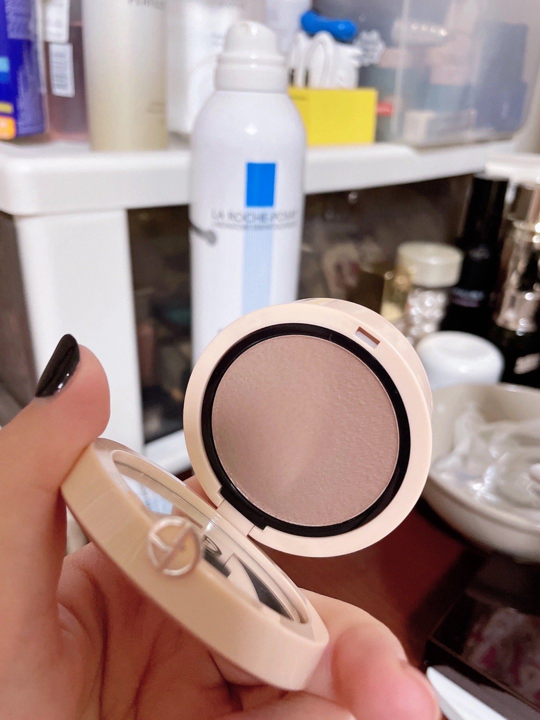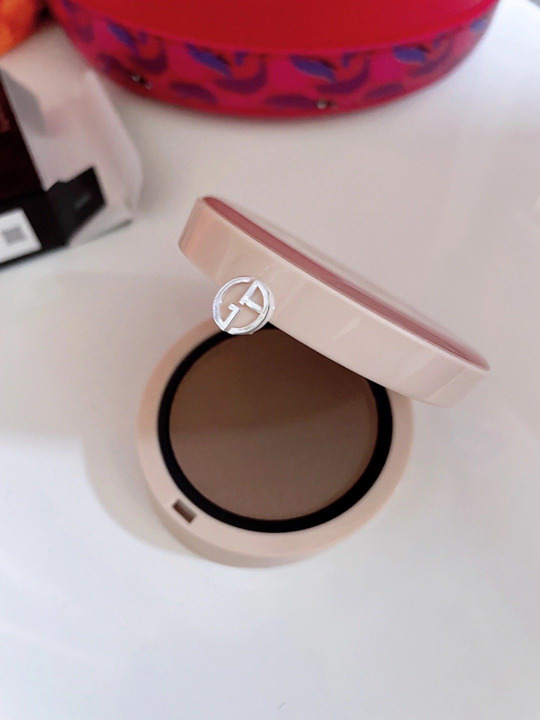 是阿玛尼新出的像气垫盒一样的,比气垫小两圈的腮红小可爱!![好爱哦]