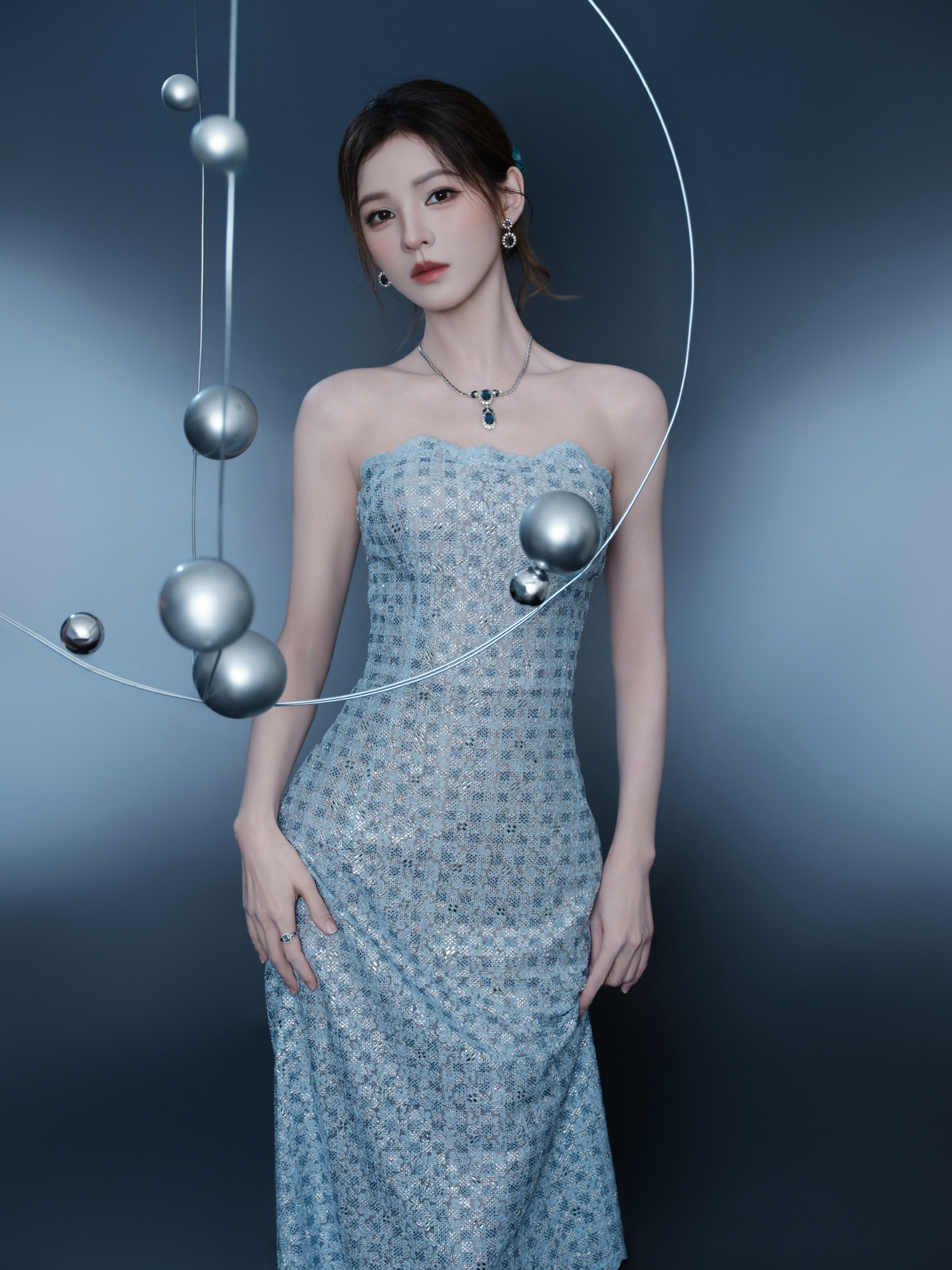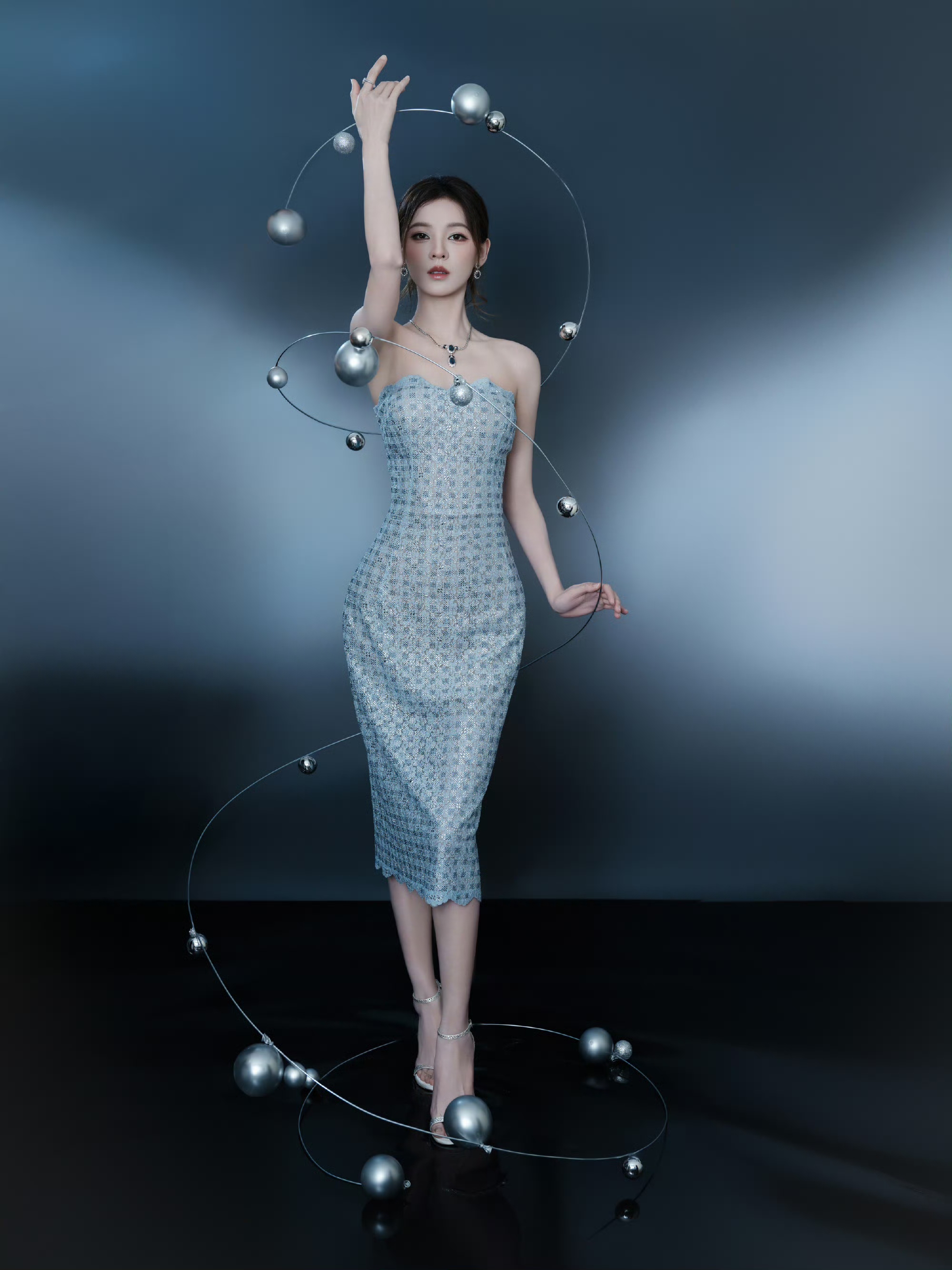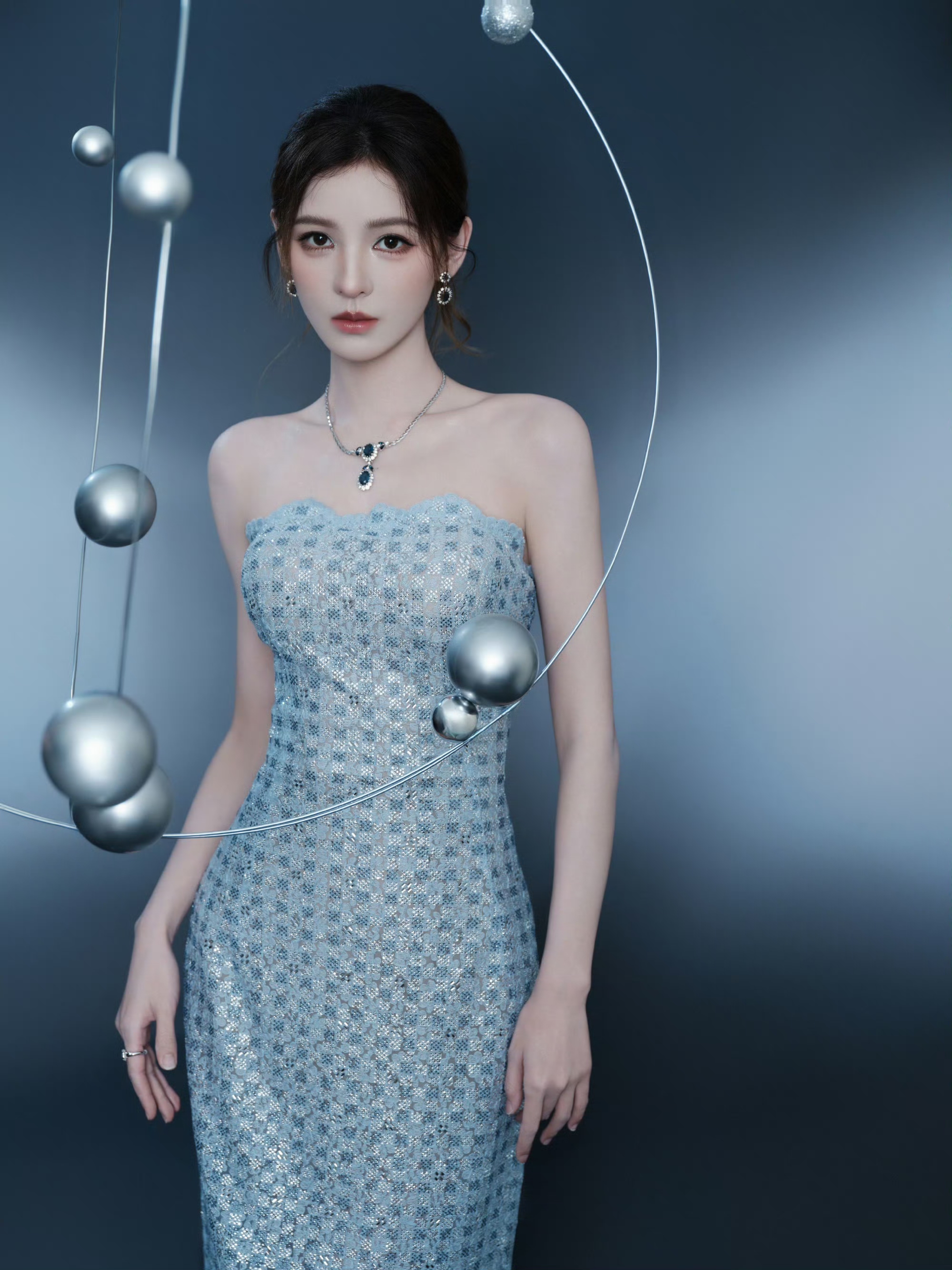 张予曦银色抹胸连衣裙