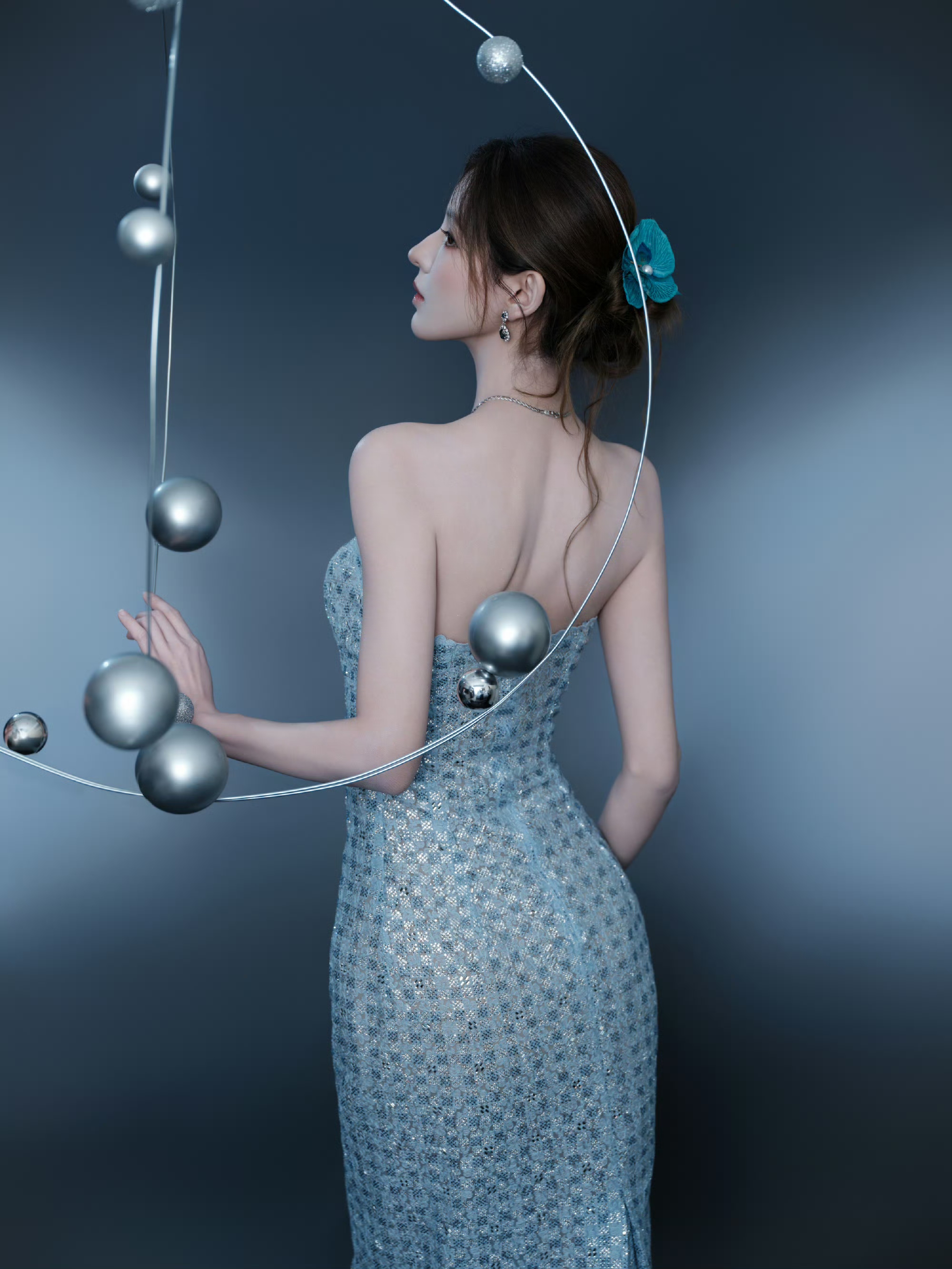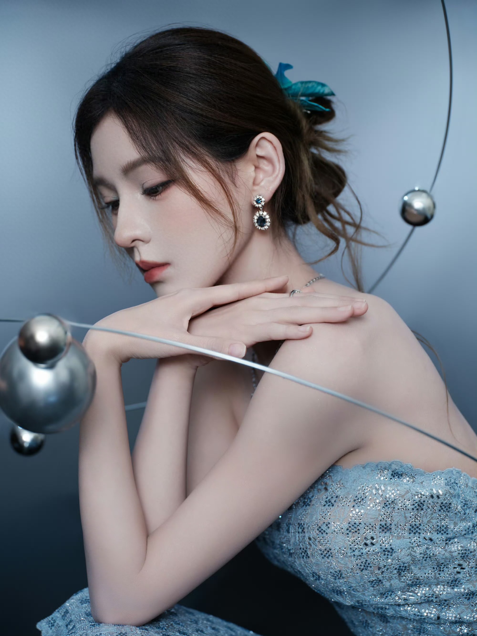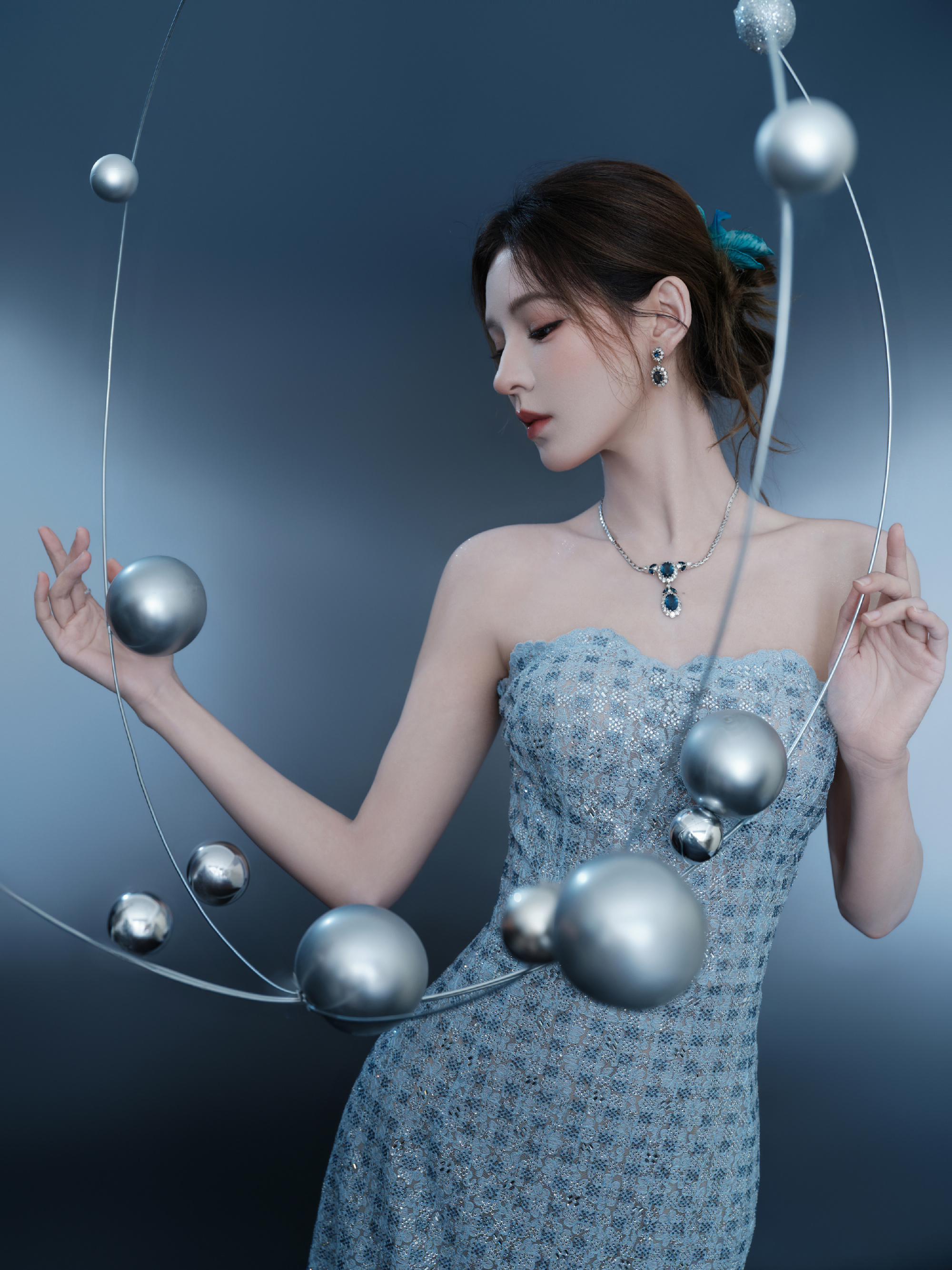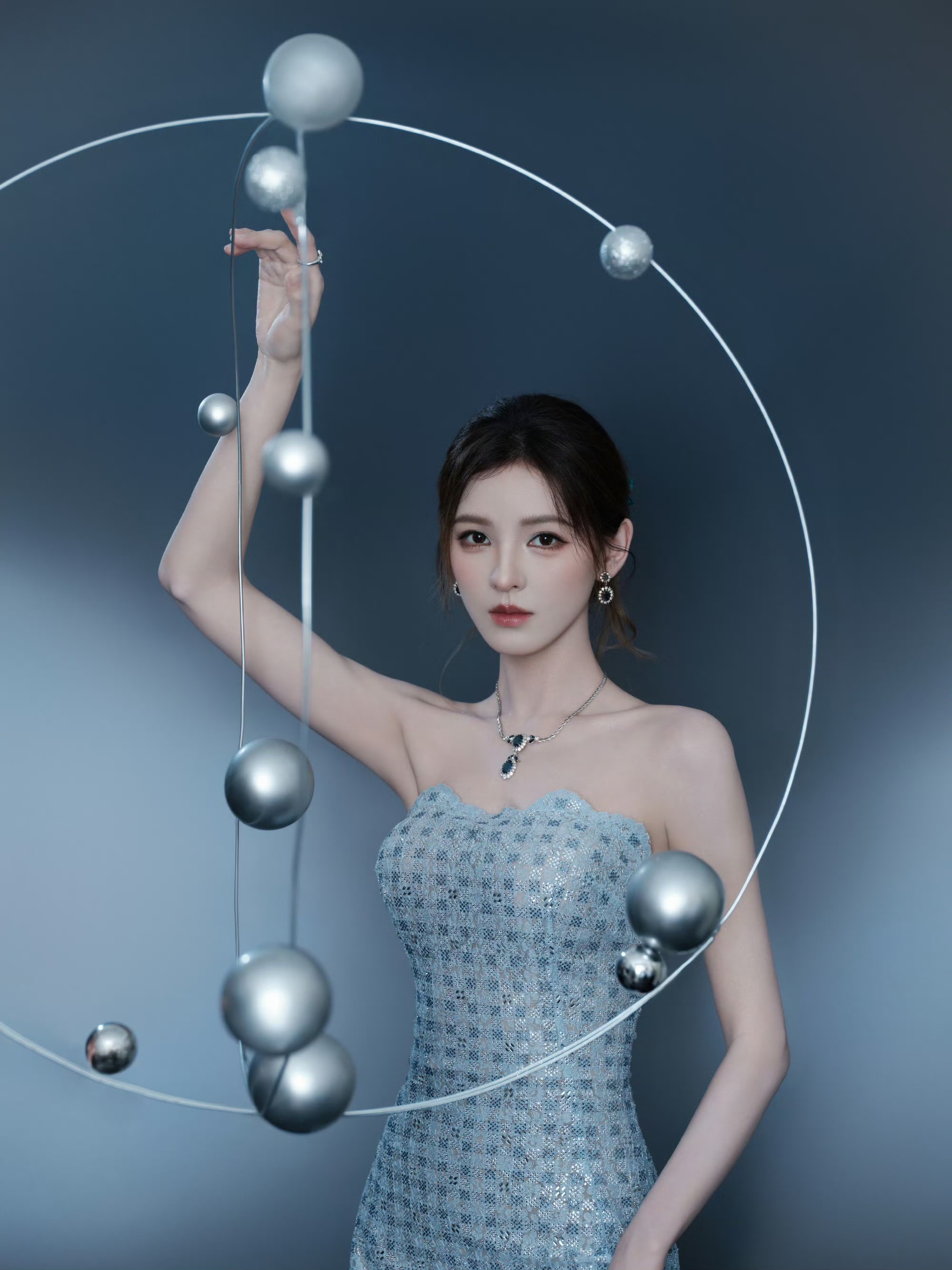 张予曦银色抹胸连衣裙