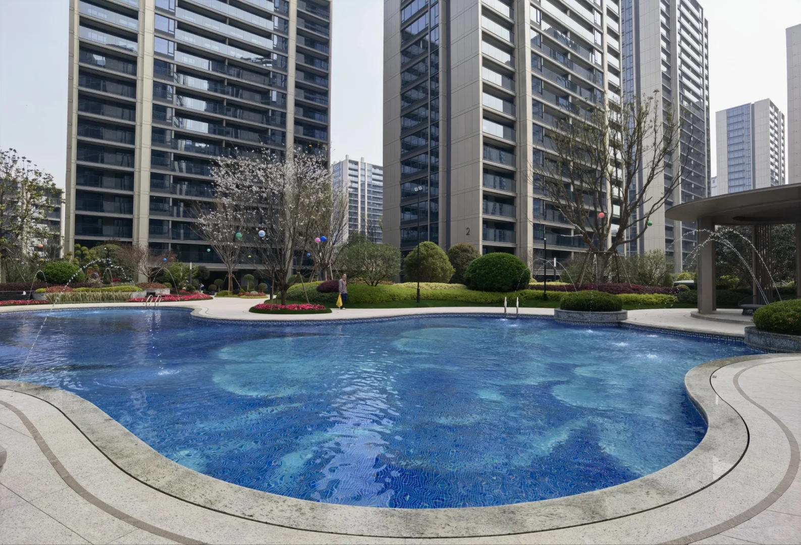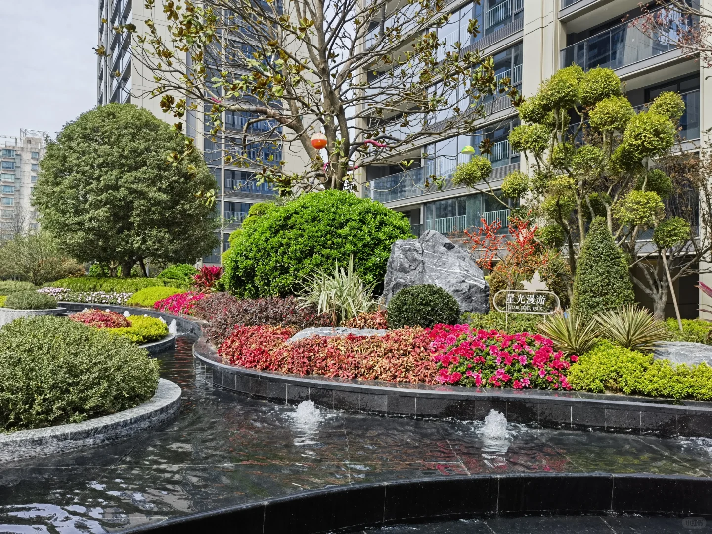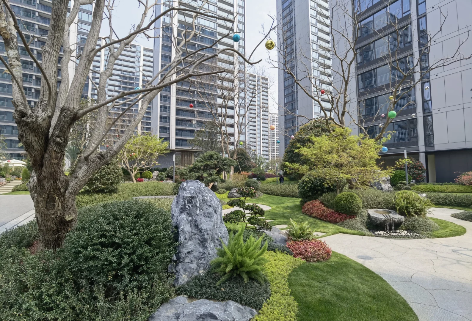 园区配套总体还是有些进步,不少地方是能看出动了心思的,比滨江在奥体无脑复制的那些盘强多了。另外,就整个大盘来说,配置也还是比较丰富的,会所、大草坪、童玩区、景观水系、会客空间、入户空间都有的,但拆分到三个区块中又略显单薄,特别是体量最小的C区。