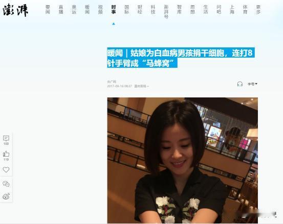 2017年,浙江女子许艾菲无偿捐献骨髓救了一位白血病男孩,男孩康复后找到她说:“你救了我,等我长大后我保护你!”