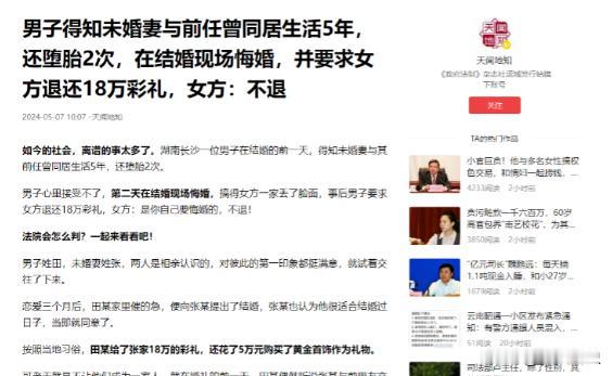 “这婚我不结了!”湖南长沙,新郎得知新娘曾与人同居5年,结婚当天愤然悔婚,新娘苦苦哀求却被无情拒绝,事后新娘父母上门求和,几欲下跪,也被新郎赶了出来。