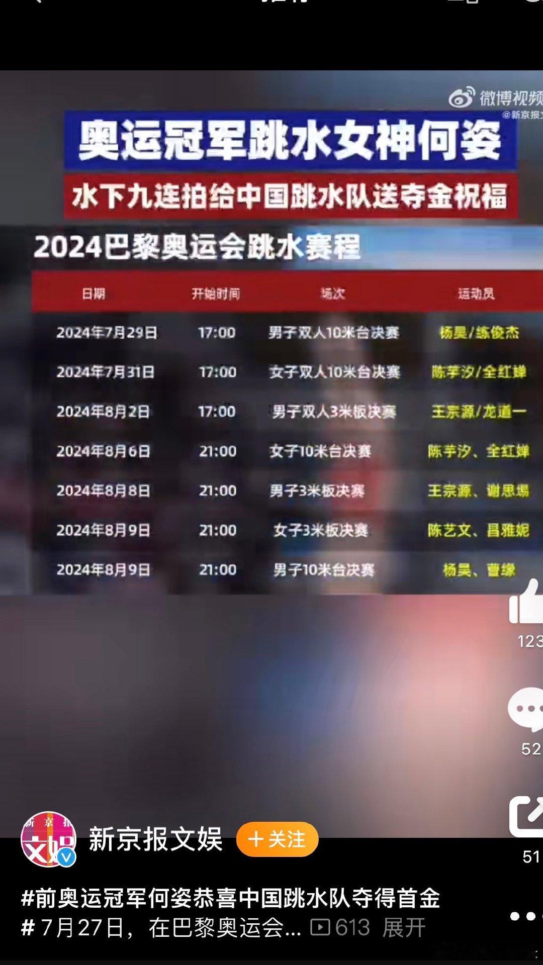 #前奥运冠军何姿恭喜中国跳水队夺得首金#真的非常令人佩服,尤其是看到前奥运冠军都