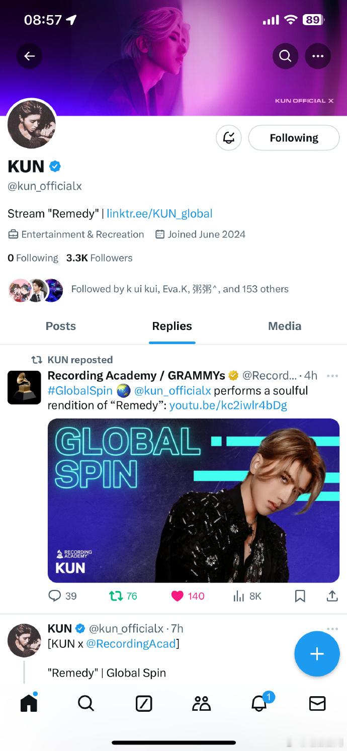 #蔡徐坤转发格莱美帖子##蔡徐坤新歌格莱美官网首发# 格莱美官网首发蔡徐坤