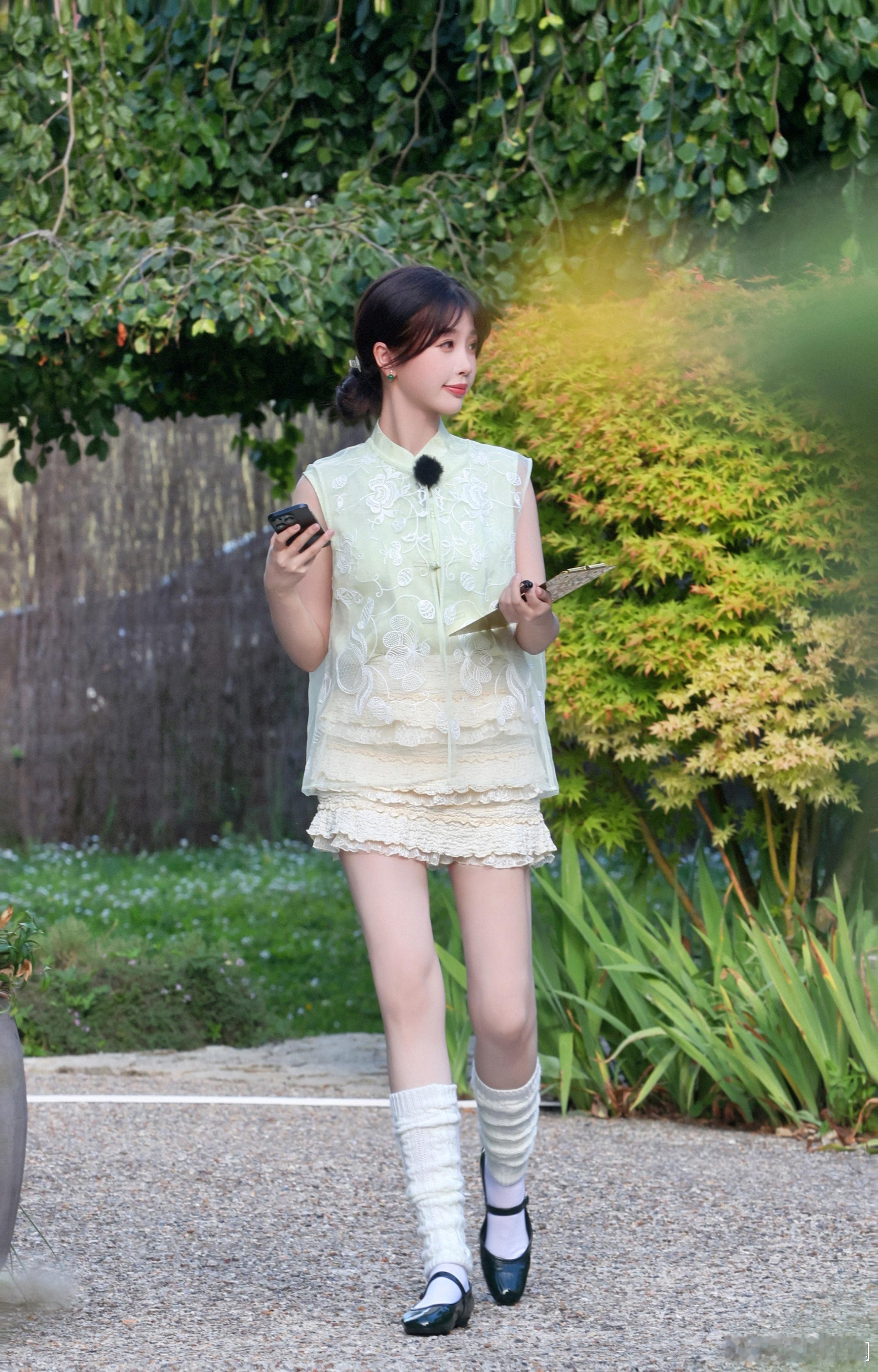 #虞书欣无袖薄纱衬衫##虞书欣好像一朵茉莉花# 虞书欣一身无袖薄纱衬衫,仿佛是从