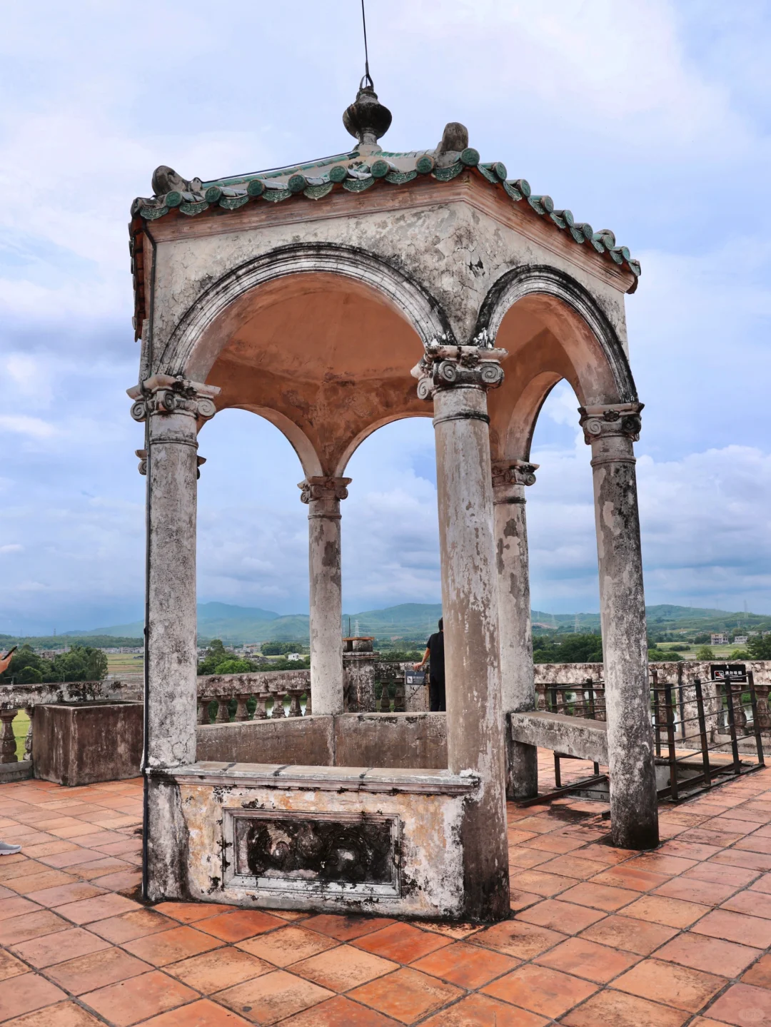 铭石楼🔆是最精美最高的一座,有6层,分主楼和附楼,许多家具甚至琉璃窗户和大门材料都是进口的,设计上也有很多细节,连逃生窗都有,顶楼可以看见周边的田园风光,定睛一看这不是《让子弹飞》🎬里黄四郎坐过的地方吗?