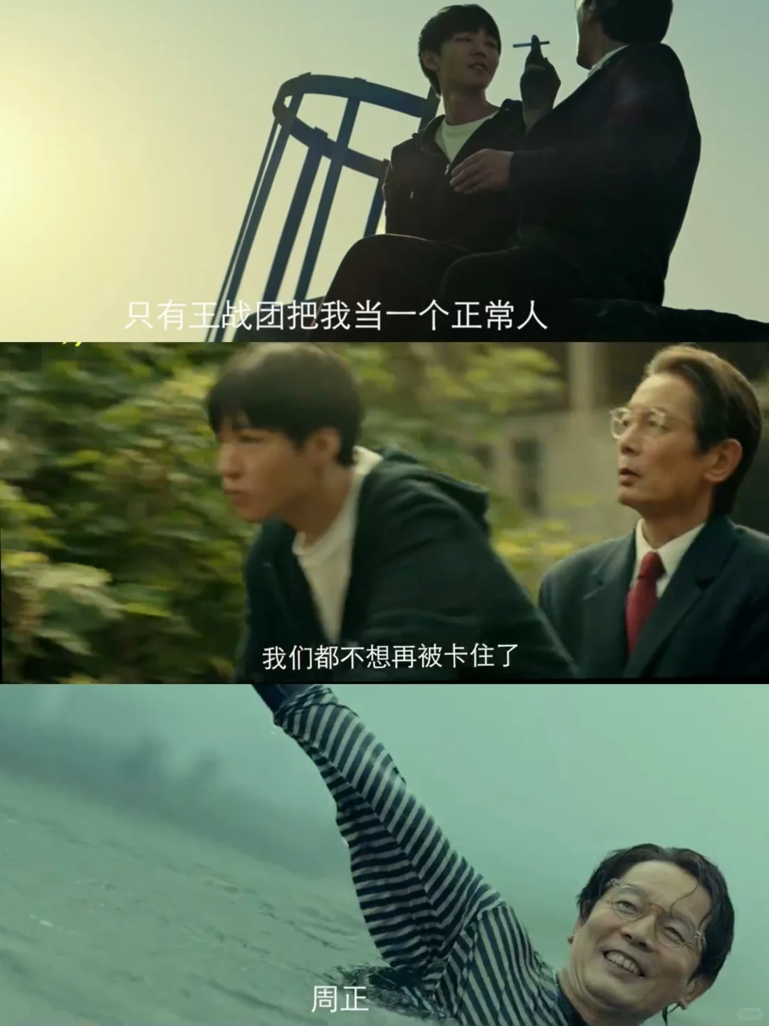 也真的会被王战团周正的忘年交情谊感动治愈,家人眼中的两个“病人”,只有彼此把对方当正常人,对于王战团来说,自己淋过雨,才想给周正撑伞☔️……