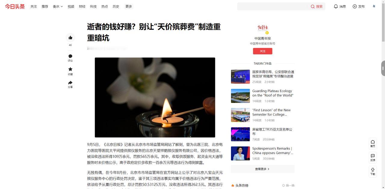 本文信源来自官方媒体【 中国青年报—逝者的钱好赚?别让“天价殡葬费”制造重重暗坑】