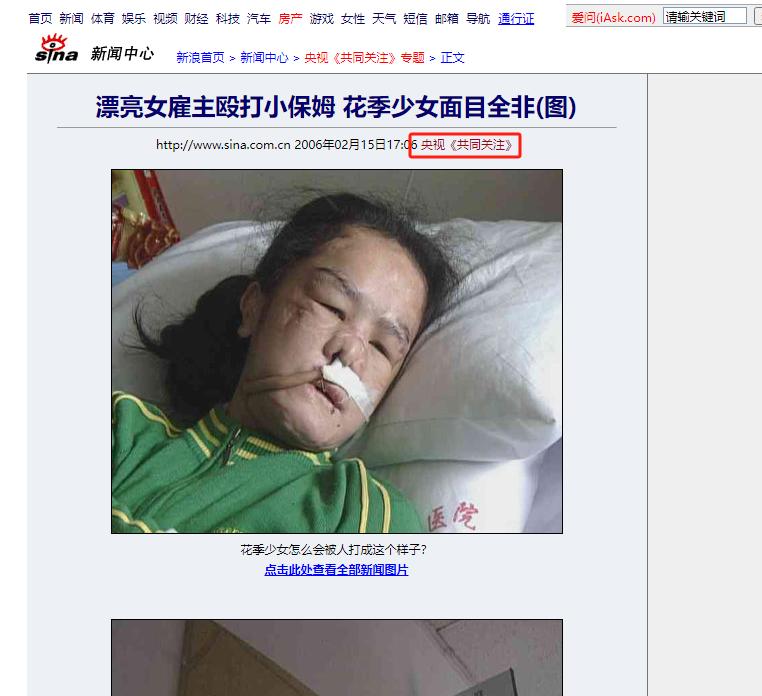 本文信源来自官方媒体【央视《共同关注》—漂亮女雇主殴打小保姆 花季少女面目全非 】