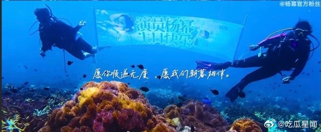 #粉丝为杨幂潜水庆生##属于杨幂与蜜蜂的双向奔赴# # 杨幂,你的善良和爱心,让我们感受到了世界的美好。38 岁生日,粉丝们在海底为你祈福。这份爱,温暖了人心,愿你永远幸福安康,生日快乐!