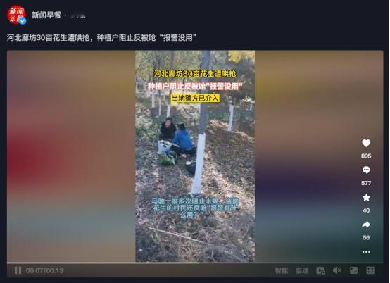 本文信源来自官方媒体【新闻早餐—河北廊坊30亩花生遭哄抢,种植户阻止反被呛“报警没用”】