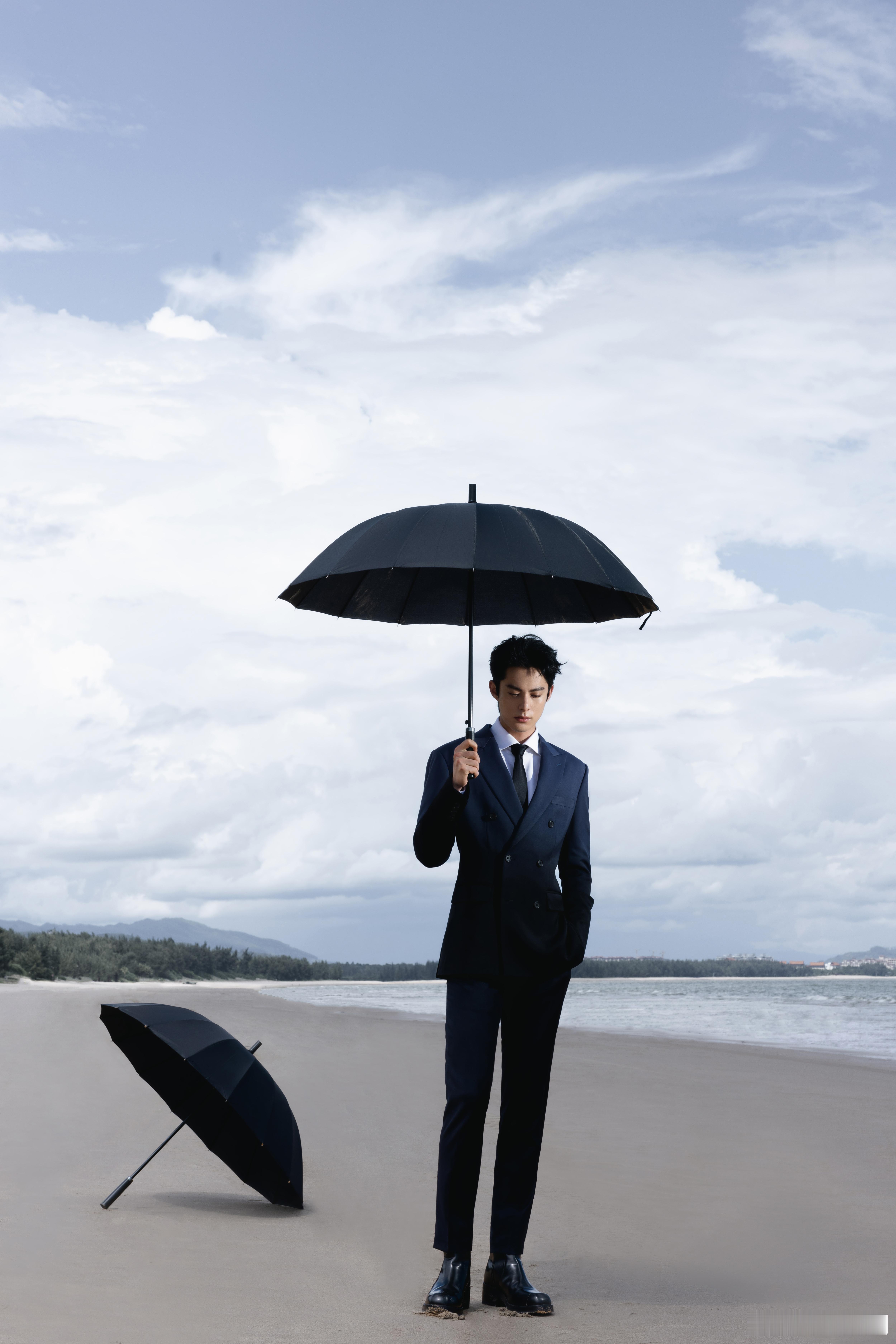 #王鹤棣海边撑伞# #王鹤棣海边西装大片#王鹤棣的海边西装撑伞造型是一道亮丽的风景线。他站在海边,大海成为他的背景板,他撑着伞,扬起的沙子像是他在大海面前的独特表演。他那如同阴郁霸道总裁的气质,让整个画面充满了故事性。工作室,多给我们一些这样的视觉享受吧。