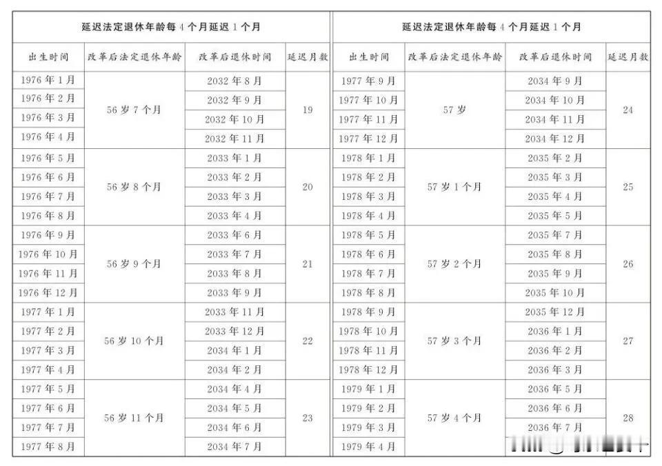 1976年1月及以后出生到1984年10月以前的,延迟退休1个月到59个月。