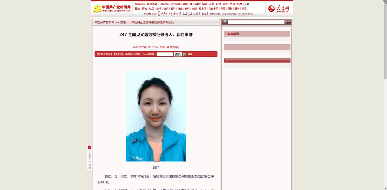 本文信源来自官方媒体【中国共产党新闻网—247 全国见义勇为模范候选人:郭佳事迹】