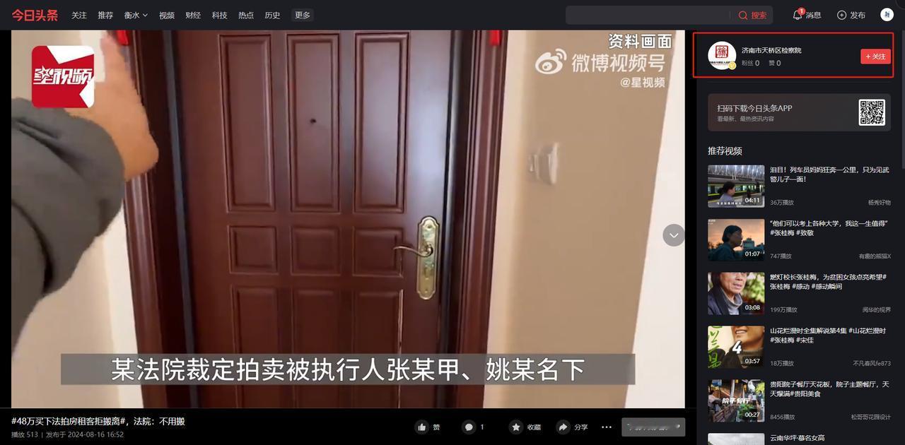 本文信源来自官方媒体【济南市天桥区检察院—#48万买下法拍房租客拒搬离#,法院:不用搬】