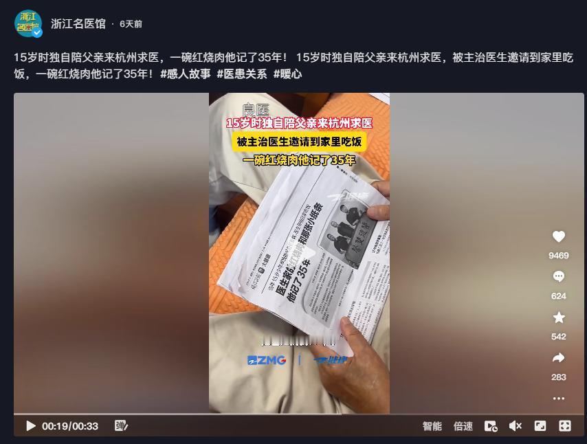 本文信源来自官方媒体【浙江名医馆—15岁时独自陪父亲来杭州求医,一碗红烧肉他记了35年!15岁时独自陪父亲来杭州求医,被主治医生邀请到家里吃饭,一碗红烧肉他记了35年!#感人故事 #医患关系 #暖心】