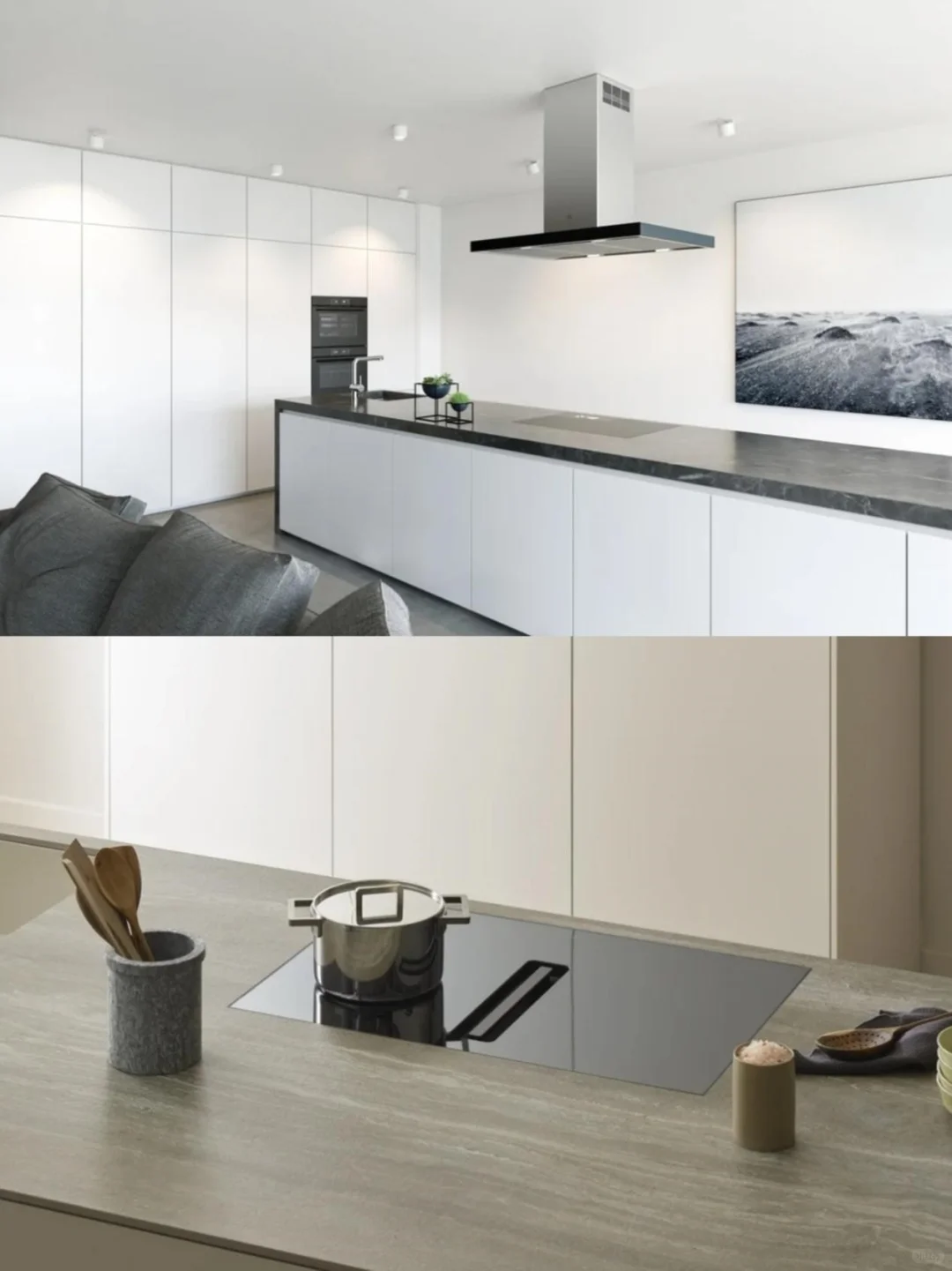 进入样板间的厨房空间,瑞族臻馐家系列组合家电是这里的焦点。历时7年的革新之作——“简·爱Excellence Line”厨电系列,从蒸烤多功能机到真空抽屉,再到Supreme冰箱和酒柜,无不散发出瑞士百年精工的魅力。智能内置食谱+数字化技术,让每一次烹饪都成为享受,仿佛把米其林厨房搬进家中。
