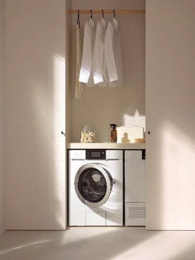 来到样板间的洗护空间,瑞族臻裳家系列是这里绝对的主角,瑞族臻裳家系列包括Adora洗衣机、干衣机、RefreshButler衣物护理管家,家享商用级湿洗功能,以专业级护理呵护每一寸衣物的纤维,松弛居家的安全感和舒适感直接拉满。
