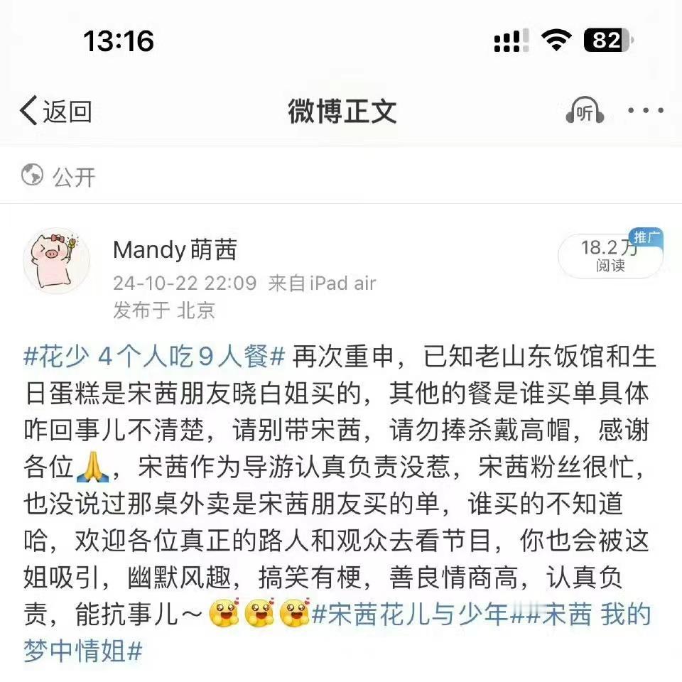 #花少4个人吃9人餐事情始末##陈好、宋茜没晚饭,周雨彤、田嘉瑞有留饭。侯明昊想