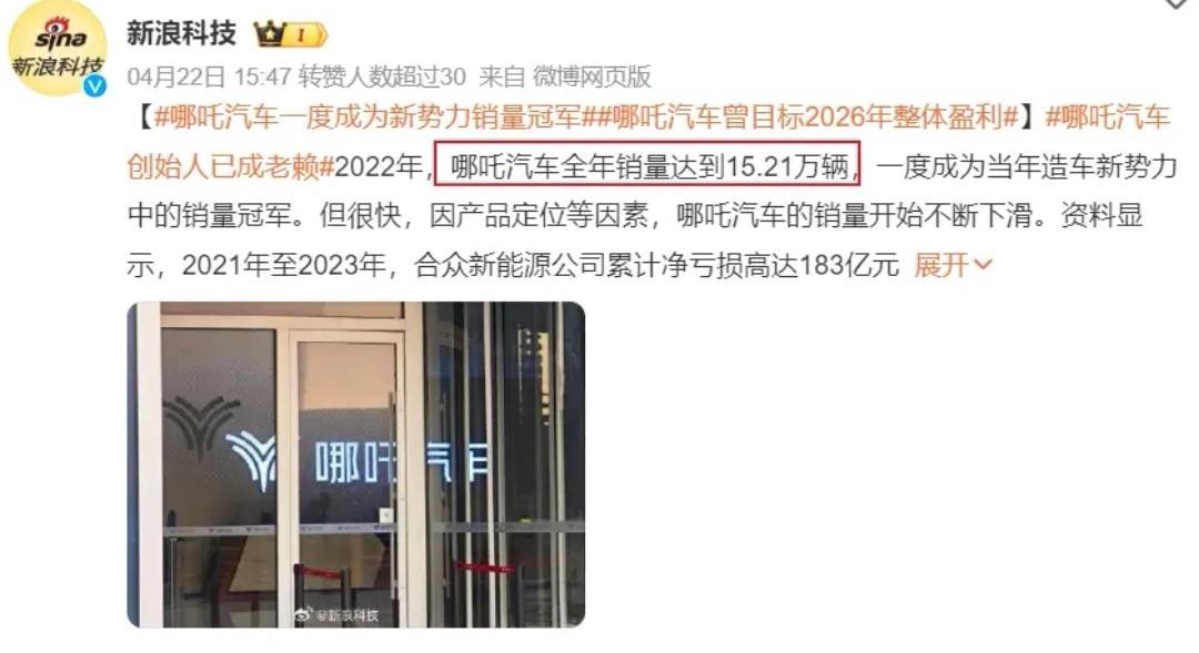 当地方政府押注数十亿、创始人头顶清华光环、企业曾登顶新势力销冠——这样的"梦幻组合",为何最终沦为央视曝光的破产案例?哪吒汽车用三年亏损183亿的惨烈事实,撕开了新能源造车狂潮中最刺眼的伤口。