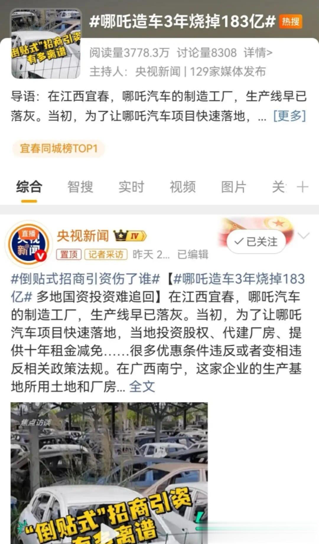 全民热议的招商困局网友@财经观察员 犀利指出:"这不是招商引资,是地方财政给私人企业发红包!"而@汽车工程师 反驳:"合肥赌对了蔚来,凭什么说宜春押注有错?"