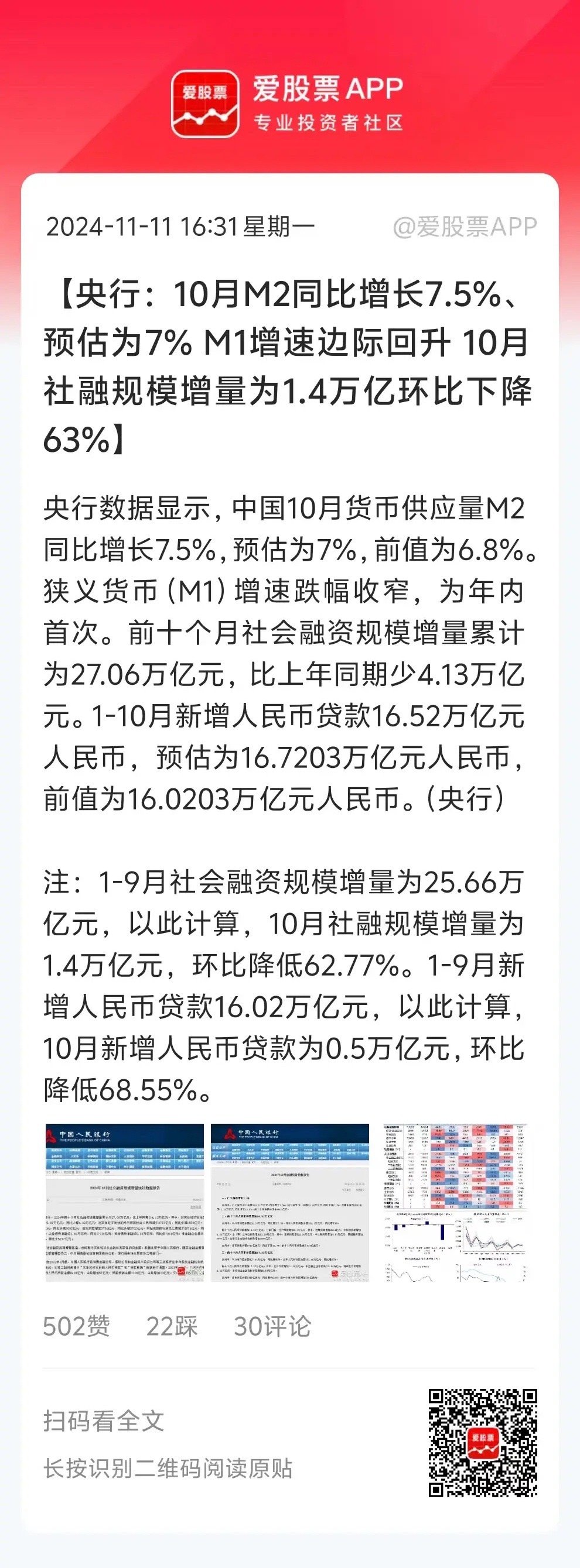 今天盘后10月份的宏观数据出炉,这是央行在924一揽子政策落地后,首个月度数据出炉!所以非常重要。