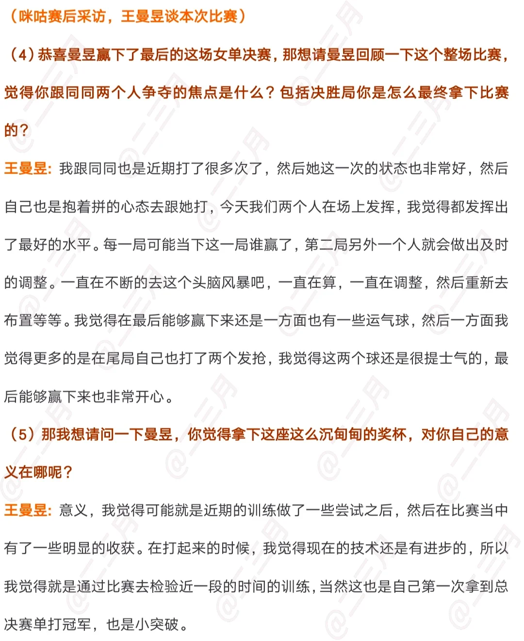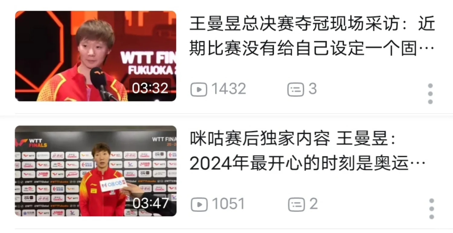 WTT福冈总决赛女单夺冠后采访以及咪咕赛后采访,恭喜王曼昱女单夺冠!