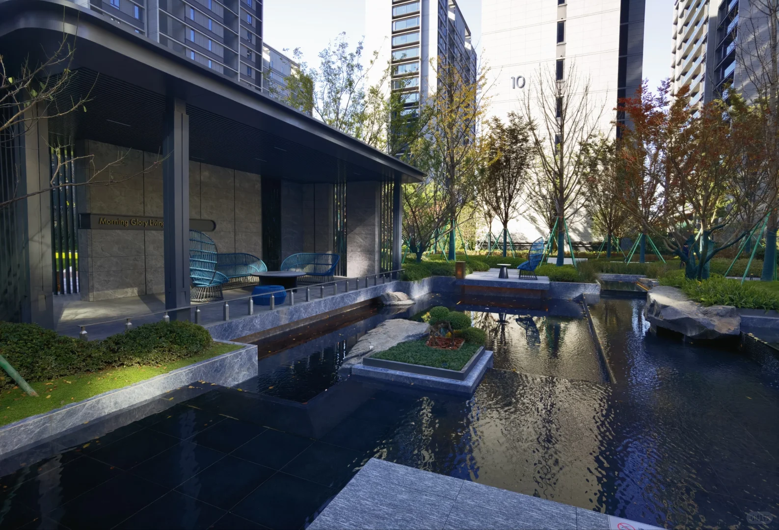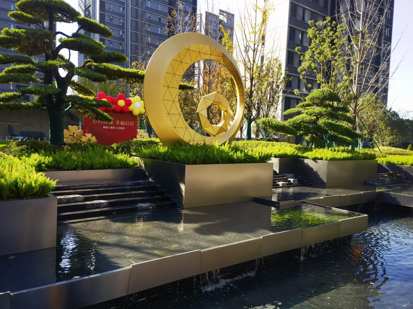3、园区配套就数量来看是不少的,有入户大堂、水景、大草坪、童玩区、篮球场、网球场等等,但精致程度和纯绿城开发的小区就不是一个档次,你比如说同样是认知花园,晨语的这个我不认真看都看不出来,还以为就是个普通的景观造型。