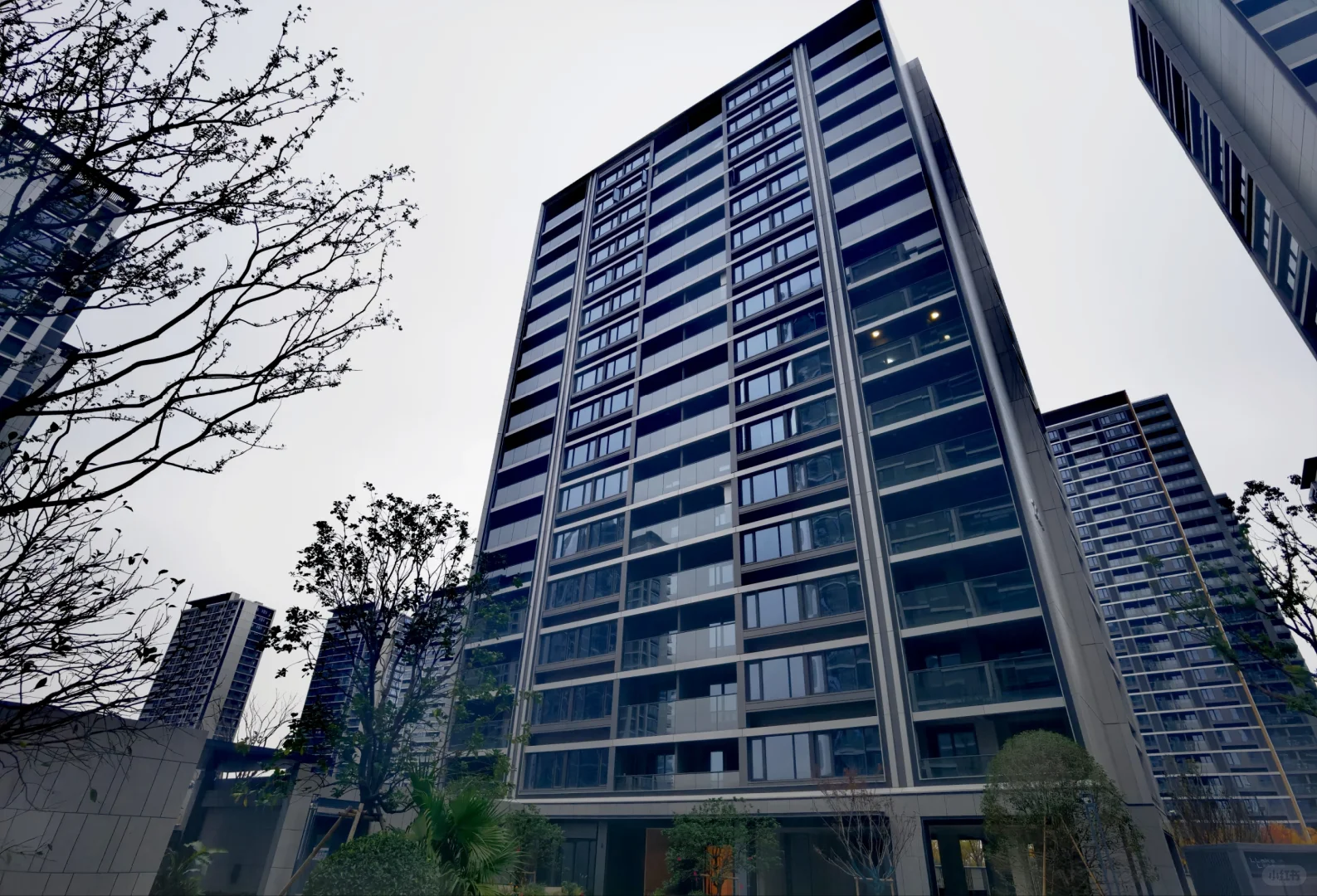 2、立面其实造型来说并没有什么特别的,对比一路之隔的湖悦岚湾更是显得普通,但一个2万+的楼盘做了三面铝板啊,还要啥自行车,杭州市区很多4万+、5万+楼盘也都只是涂料啊。