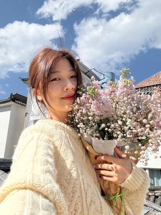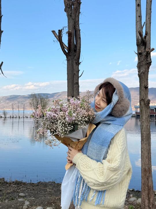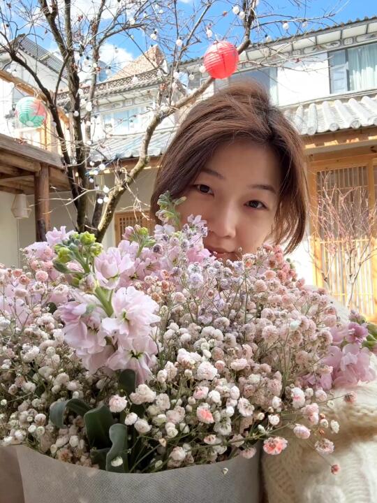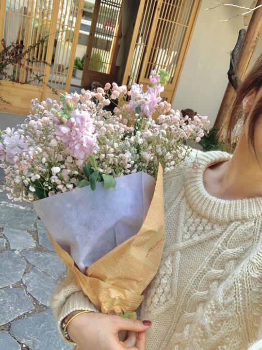 跟老板要了张牛皮纸,自己把两束花捆在一起!意外的好看(。・ω・。)