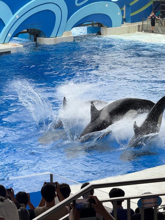 5只虎鲸🐳组团炸水花🌊前排观众秒变落汤鸡