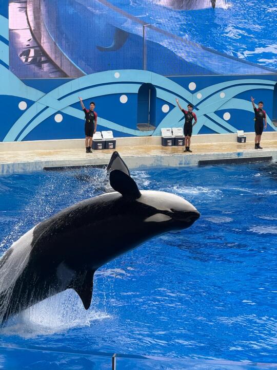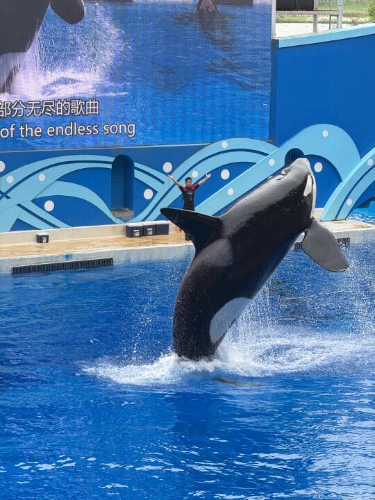 被虎鲸🐳泼水💦和海洋动物近距离接触💦