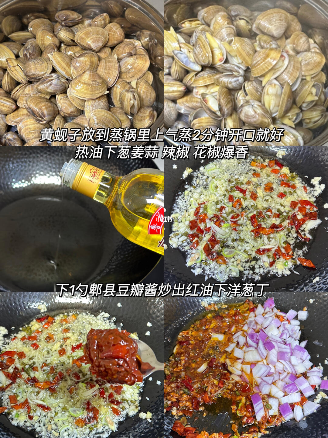 1️⃣黄蚬子放到蒸锅里上气蒸2分钟开口就好