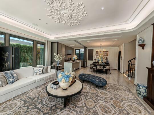 6、主力户型建面约210-280㎡,所有的户型都做了全套房设计,每个卧室都自带独立卫生间。我就看了一套下叠,地下室的层高不错,有6米,而且它还做了更多的采光井,南北都有一个。