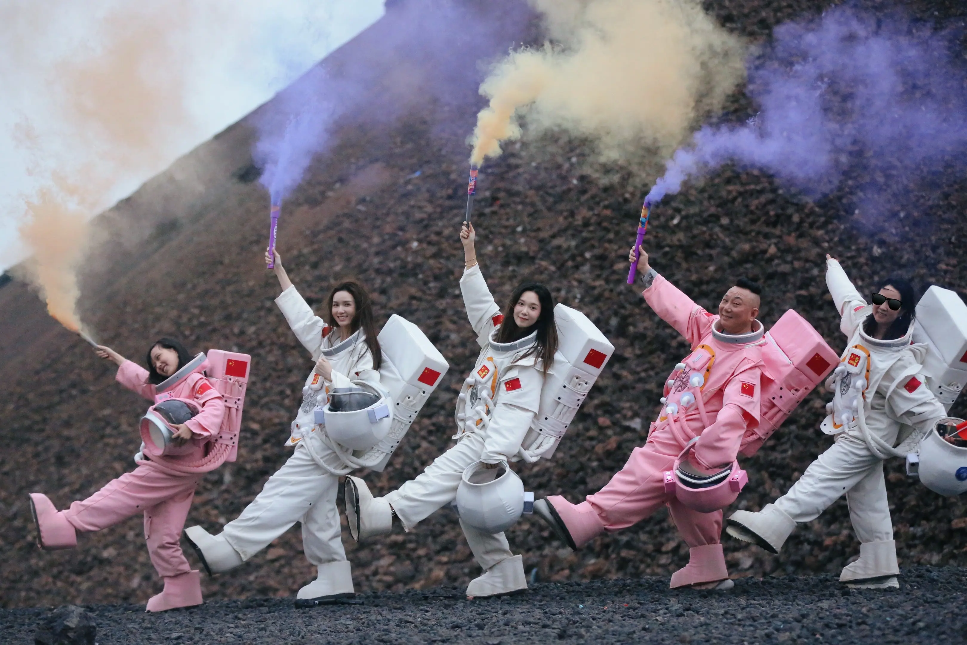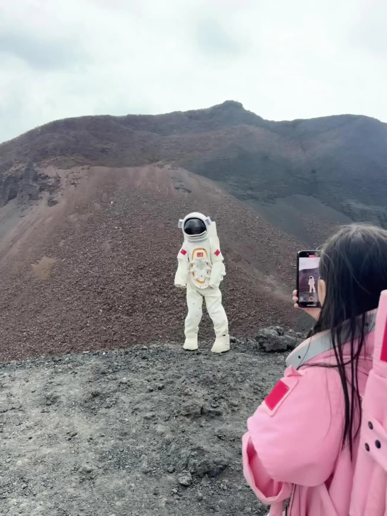 发现妈妈变得爱拍照了,以前她总是说自己太胖了不想拍,今年她好像突然开窍了一样,每到一个打卡点就要拍照,甚至还主动提出要拍宇航员。