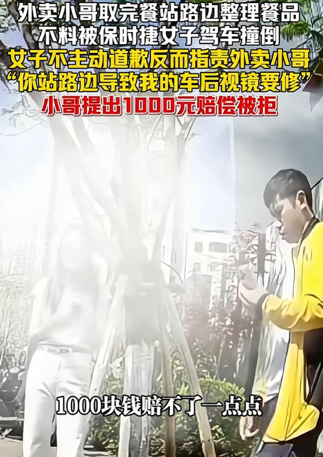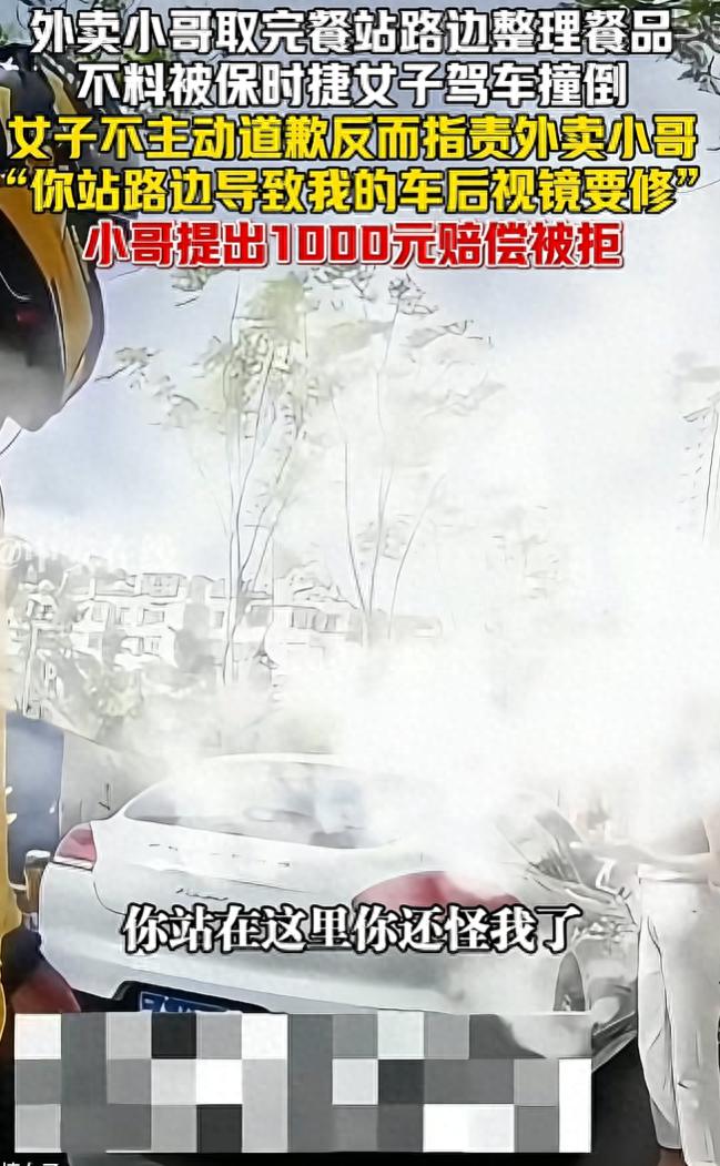 像小哥那样站在路边整理餐品,严格来说也有些问题,但女司机能在没有其他车辆干扰的情况下把小哥撞倒,事后不仅不道歉不赔偿反而责怪小哥损坏了后视镜,这问题就太大了,说明不仅车开的不行,人品更不好。