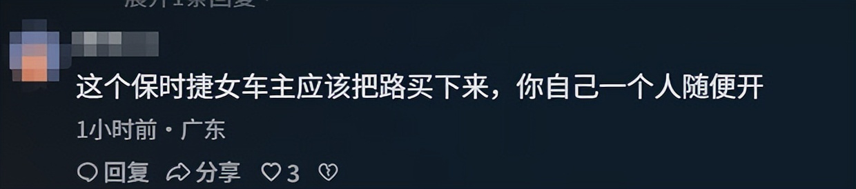 有的网友说:这个保时捷女车主应该把路买下来,你自己一个人随便开。
