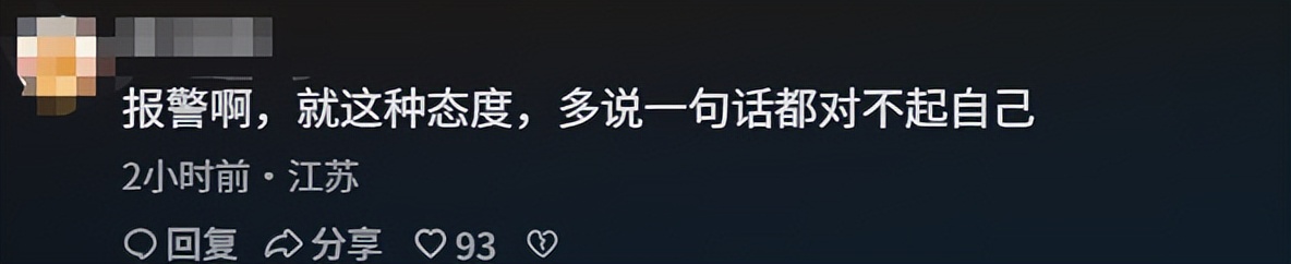还有的网友说:报警啊,就这种态度,多说一句话都对不起自己。