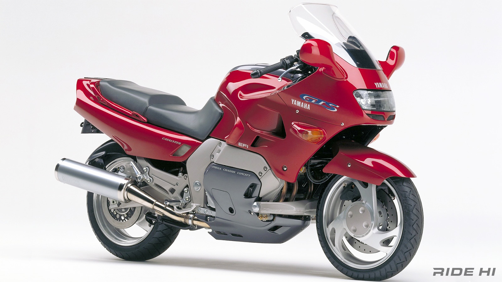 为了找回一点「人车一体」的玩味,开发团队在连杆结构中刻意设计了一些微小的几何变化,模拟出类似传统前叉的下沉感,这台取名为 GTS1000 的旗舰旅跑,在 1992 年科隆车展发表时,简直像是从另一个次元降临,特别是那副铝合金铸造的 Ω(Omega)型车架,环抱引擎的线条就像希腊字母 Ω 般优雅且强悍,彻底颠覆了当时对机车结构的认知。