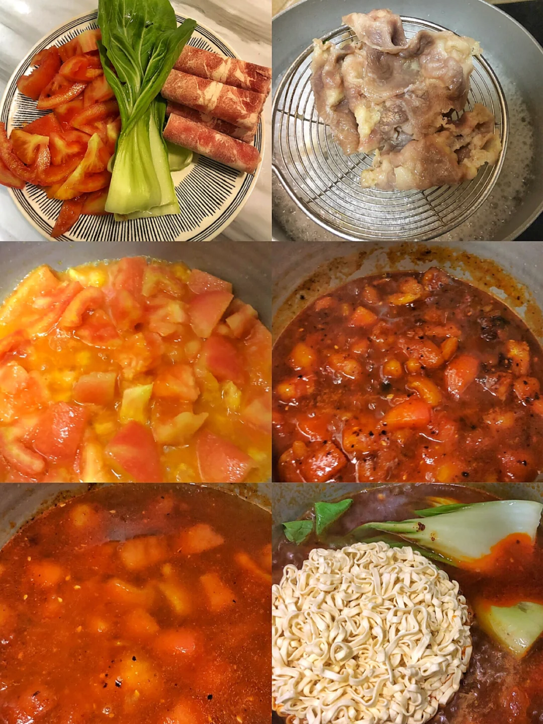 泡面一包 番茄一个 青菜适量(可不加) 肥牛5片