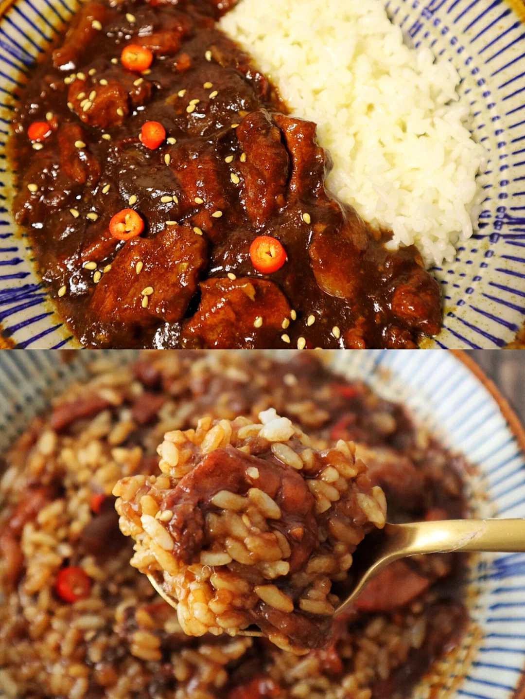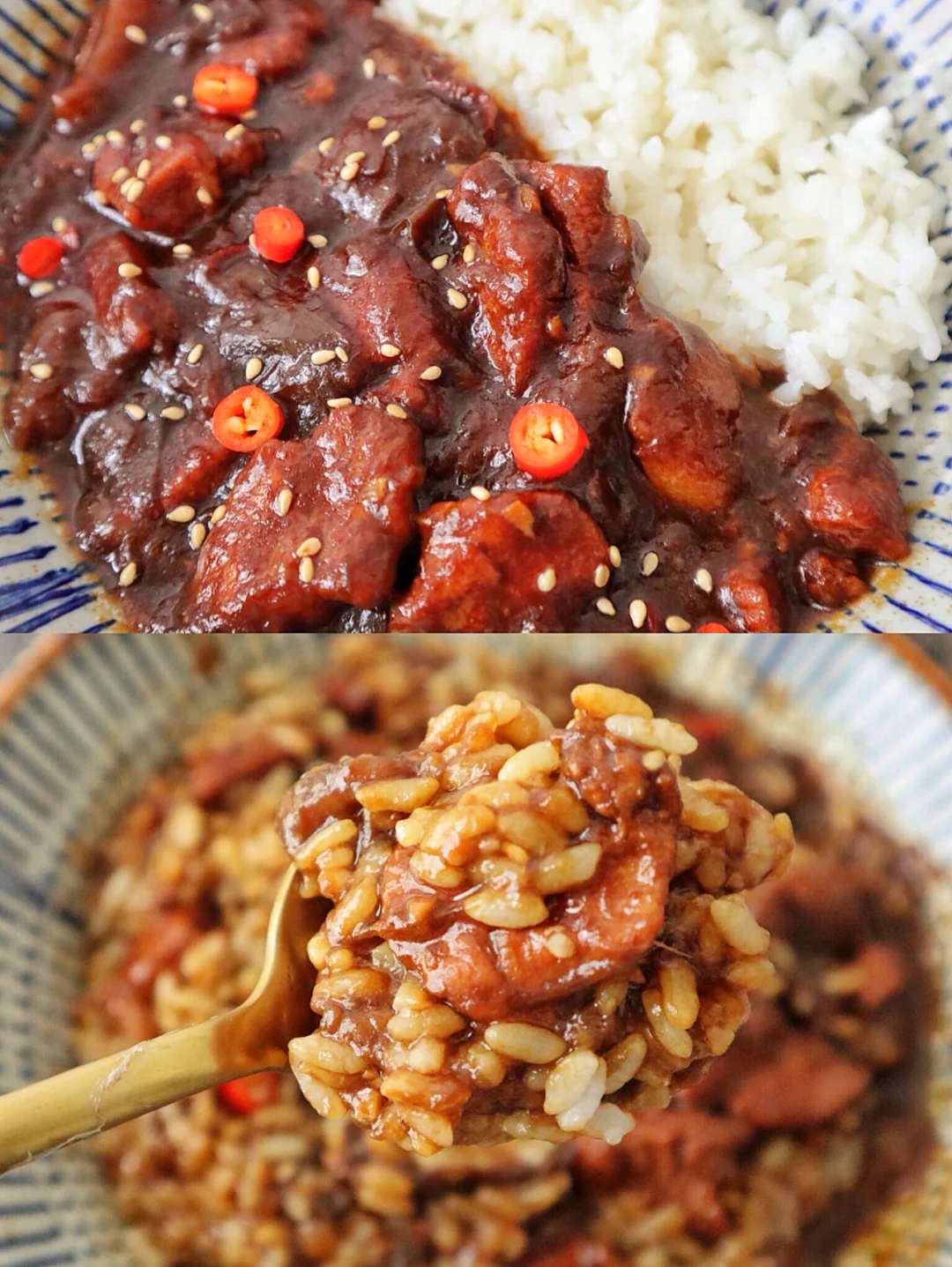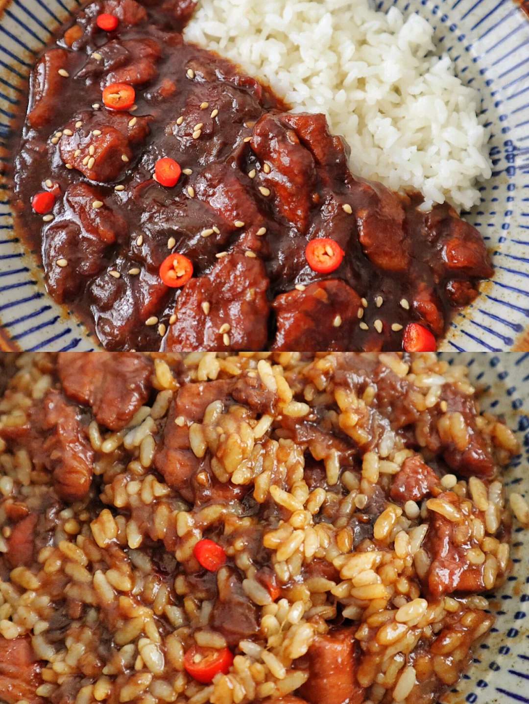 😋盛一碗米饭,把肉酱盖上去,拌匀开吃,别提多香了~