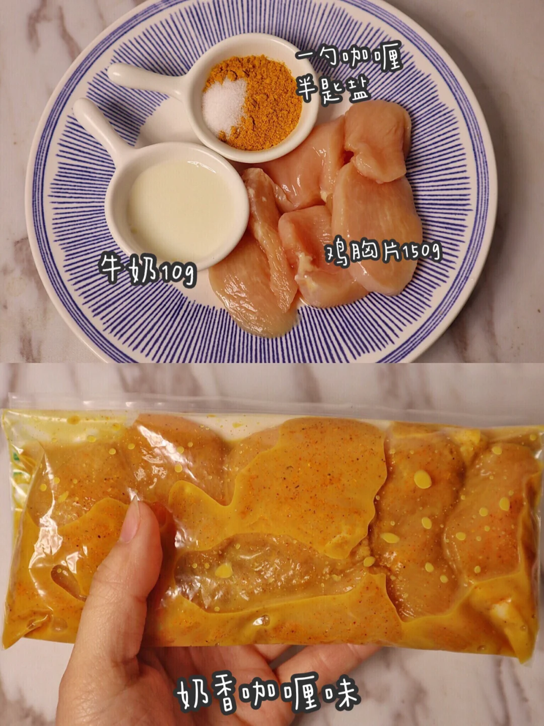 牛奶10g,盐半匙,咖喱粉一勺