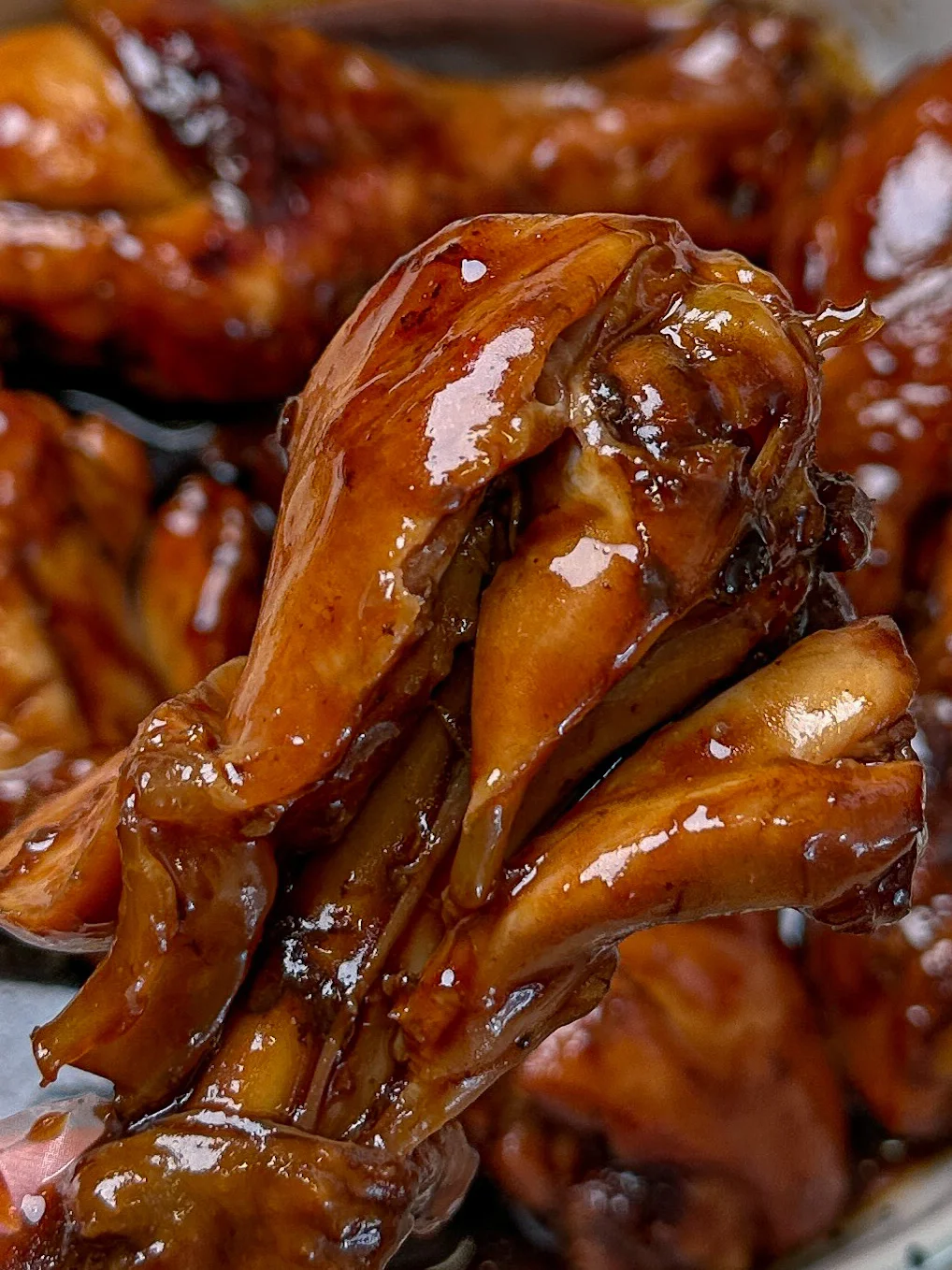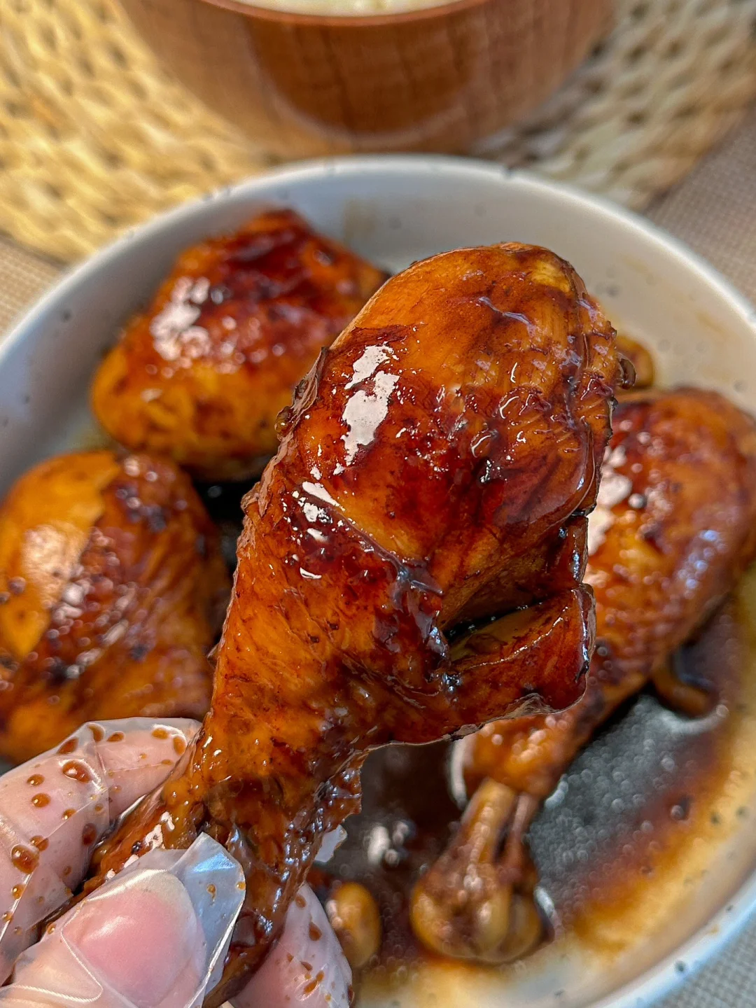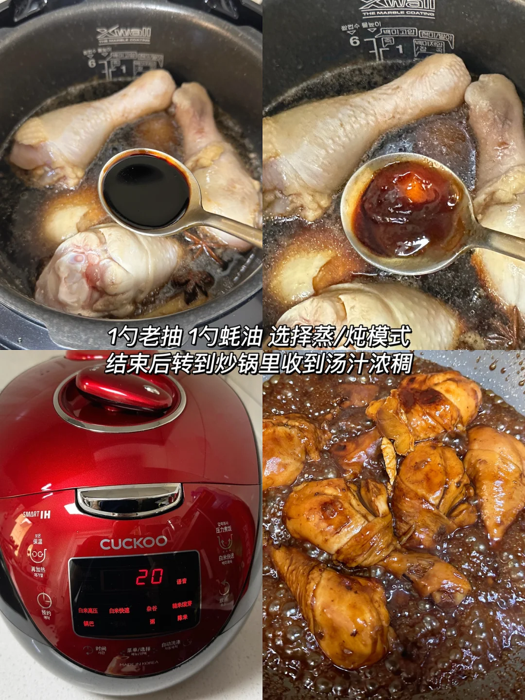 2️⃣加3片姜 2粒八角 300ml可乐 3勺生抽 1老抽 1勺蚝油,选择蒸/模式,结束后转到炒锅里收到汤汁浓稠