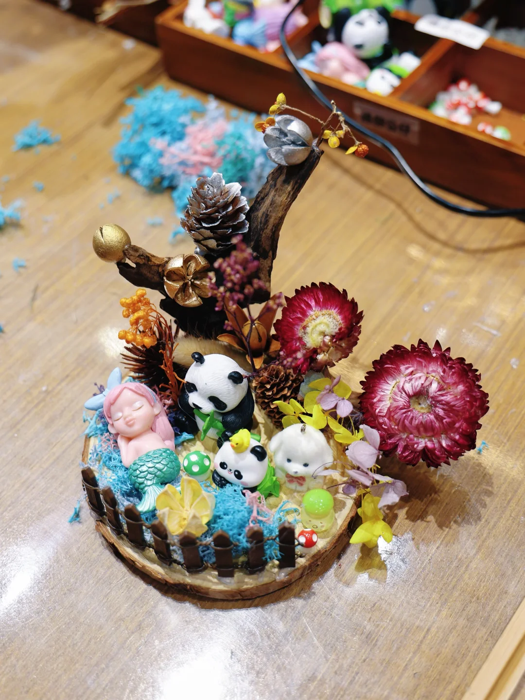 一进一楼就是自然手作区,氛围感直接拉满[黄金薯R]原木色的桌椅、满墙的自然材料,松果、树枝、干花🌸……随手一拍都是森系大片。娃可以亲手做🐚贝壳手工、木片微景观……小西瓜自己能独立完成一个作品,超级🈶成就感!重点是——不吵不闹,还能锻炼动手能力和专注力,老母亲终于能喘口气喝口咖啡了☕️