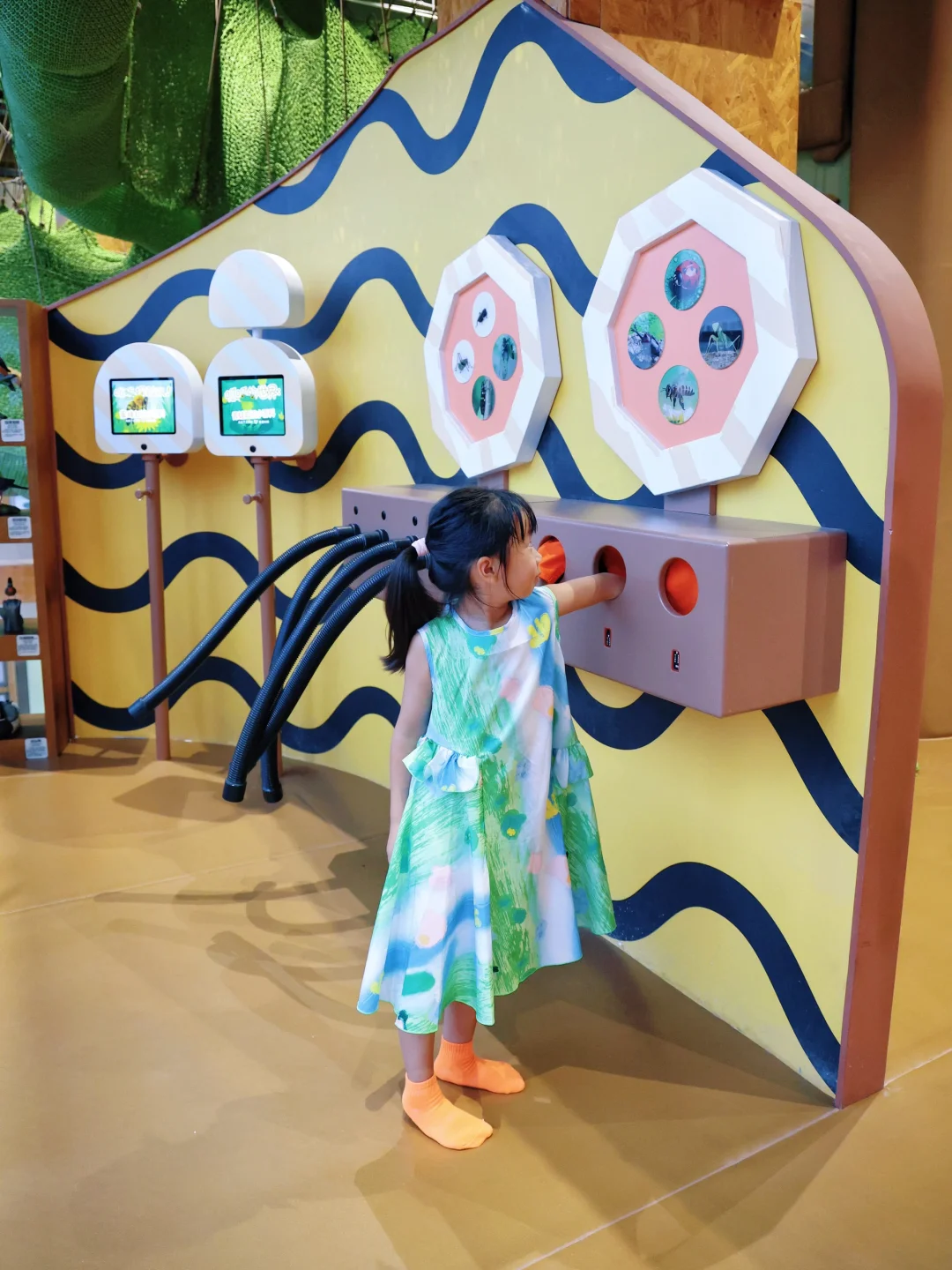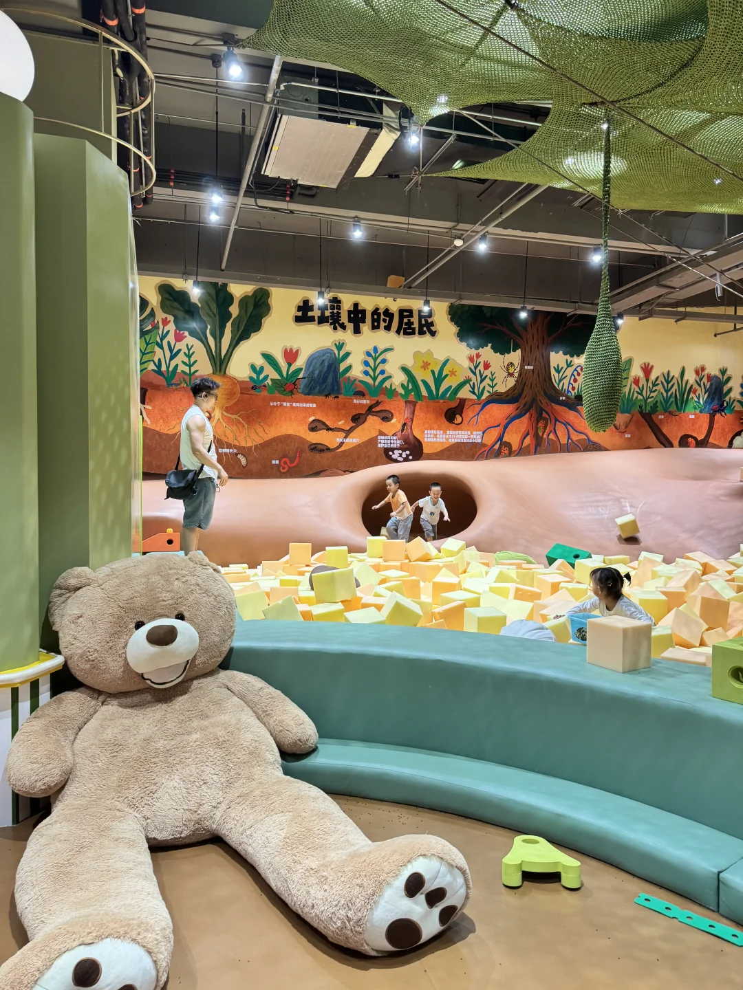 室内设计得太有想象力了,仿佛走进了森林童话。🈶模拟洞穴、树屋滑梯🛝、光影森林,还有可以攀爬、钻洞、滑行的立体探索路径。小西瓜像只小猴子🐒一样上蹿下跳,尽情放电!很惊艳的是,很多装置都融合了自然知识,比如“种子的旅行”“昆虫的家”,边玩边学,润物细无声,比课本📕生动多了!