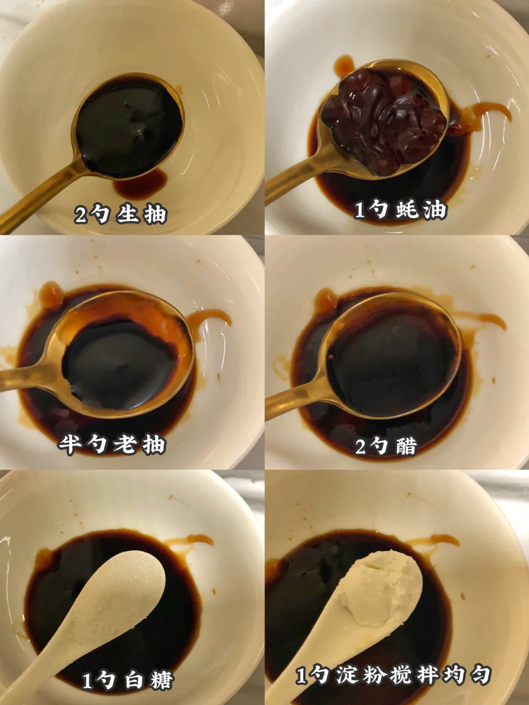 1️⃣调料汁:2勺生抽 1勺蚝油 半勺老抽 2勺醋 1勺糖 1勺淀粉搅拌均匀