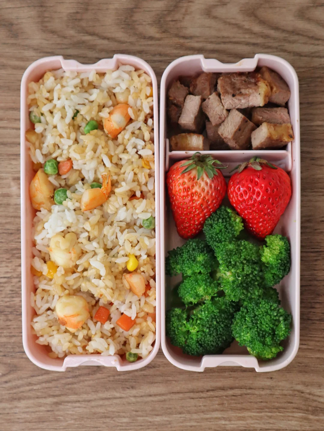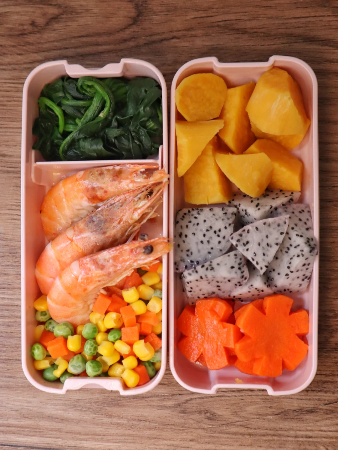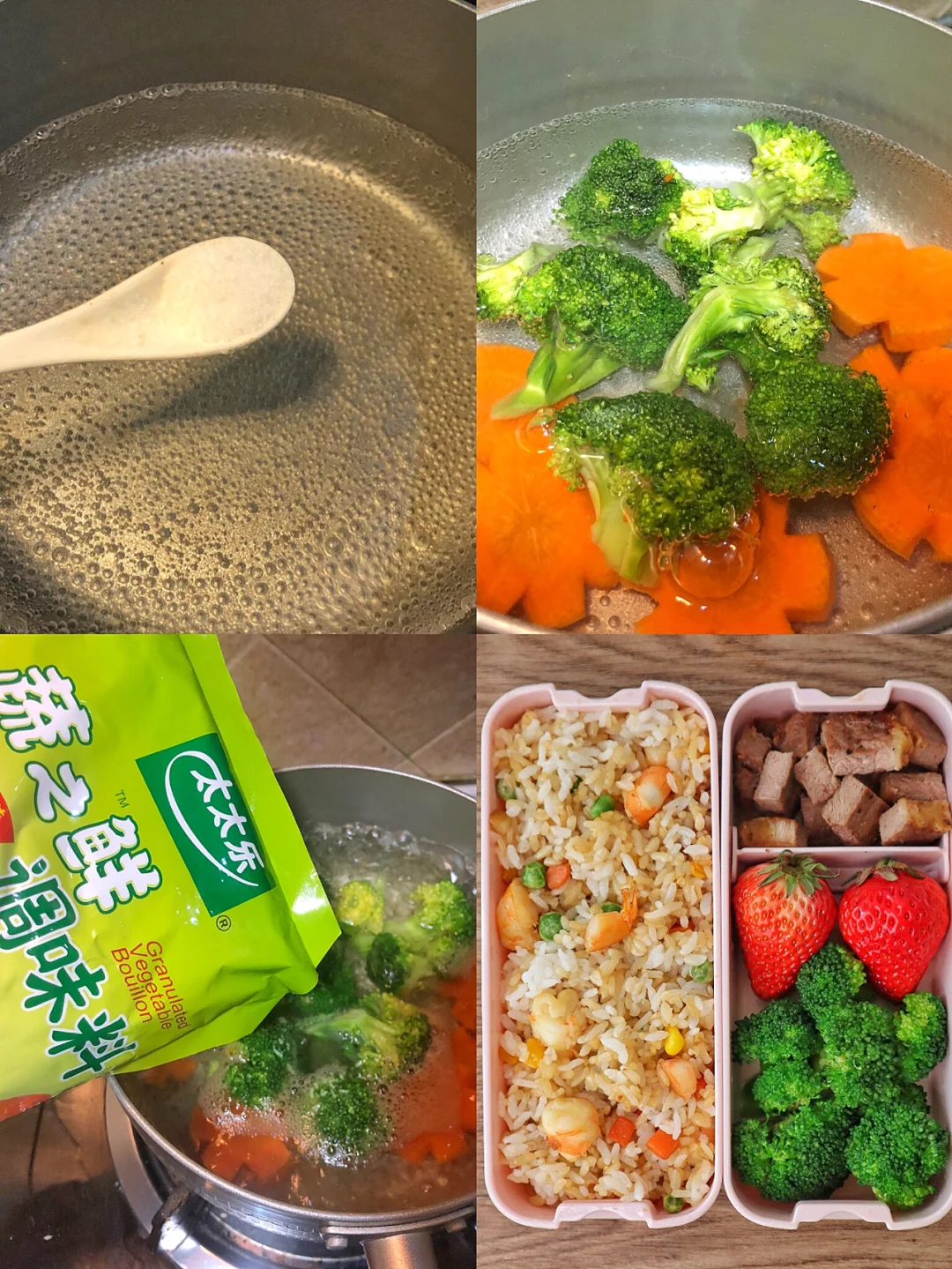时蔬米饭做法:糙米饭焖熟(提前泡半小时 糙米会有些硬),热油炒虾仁和时蔬虾仁熟后加米饭