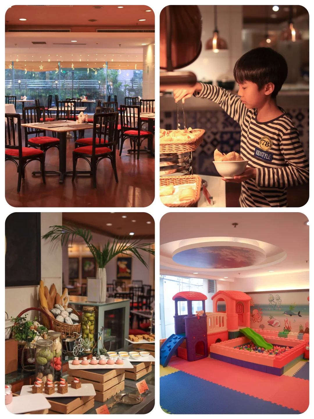 🔹亲子房型视野很好,夜幕降临时的繁华城景特别美,隔音很好。一进房孩子就被乐高玩具和毛绒吸引了。这里的自助晚餐出品性价比高、种类多还特别好吃,行政酒廊对行政房住客开放到晚上9点,晚上带娃去吃个小吃饮品很不错。